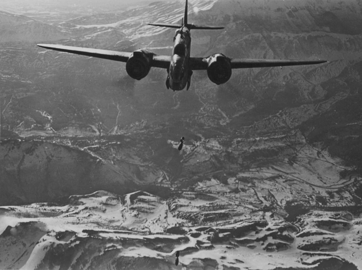 英国皇家空军的美制轰炸机——1943年,意大利。英国皇家空军第223中队的一架美制 A-30 马丁“巴尔的摩”轰炸机,正在向罗马—佩斯卡拉公路投掷炸弹。 马丁“巴尔的摩”轰炸机(A-30 Martin Baltimore IV,参见图2~4)是美国马丁公司在二战期间为英国皇家空军生产的中型双发轰炸机。它主要在北非和地中海战场服役,用于战术轰炸,例如攻击敌方机场、交通线和部队集结点。英国皇家空军是其主要用户,美国陆军航空队并未装备该机型。 第223中队 (No. 223 Squadron RAF)是英国皇家空军的一支作战部队,当时活跃于地中海战场,执行对地攻击任务。