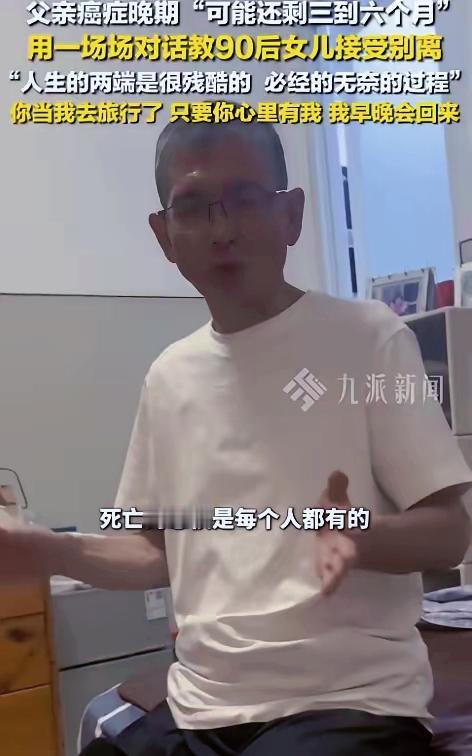 上海男子确诊胰腺癌晚期, 平静告知女儿病情并做心理建设, 坦言死亡是必经之路, 让女儿想自己时抬头看看, 称会永远陪伴。 这份面对生死的冷静与深沉父爱令人动容, 其实人惧怕死亡, 更多是怕与所爱之人永别、 担忧亲人无人照料。