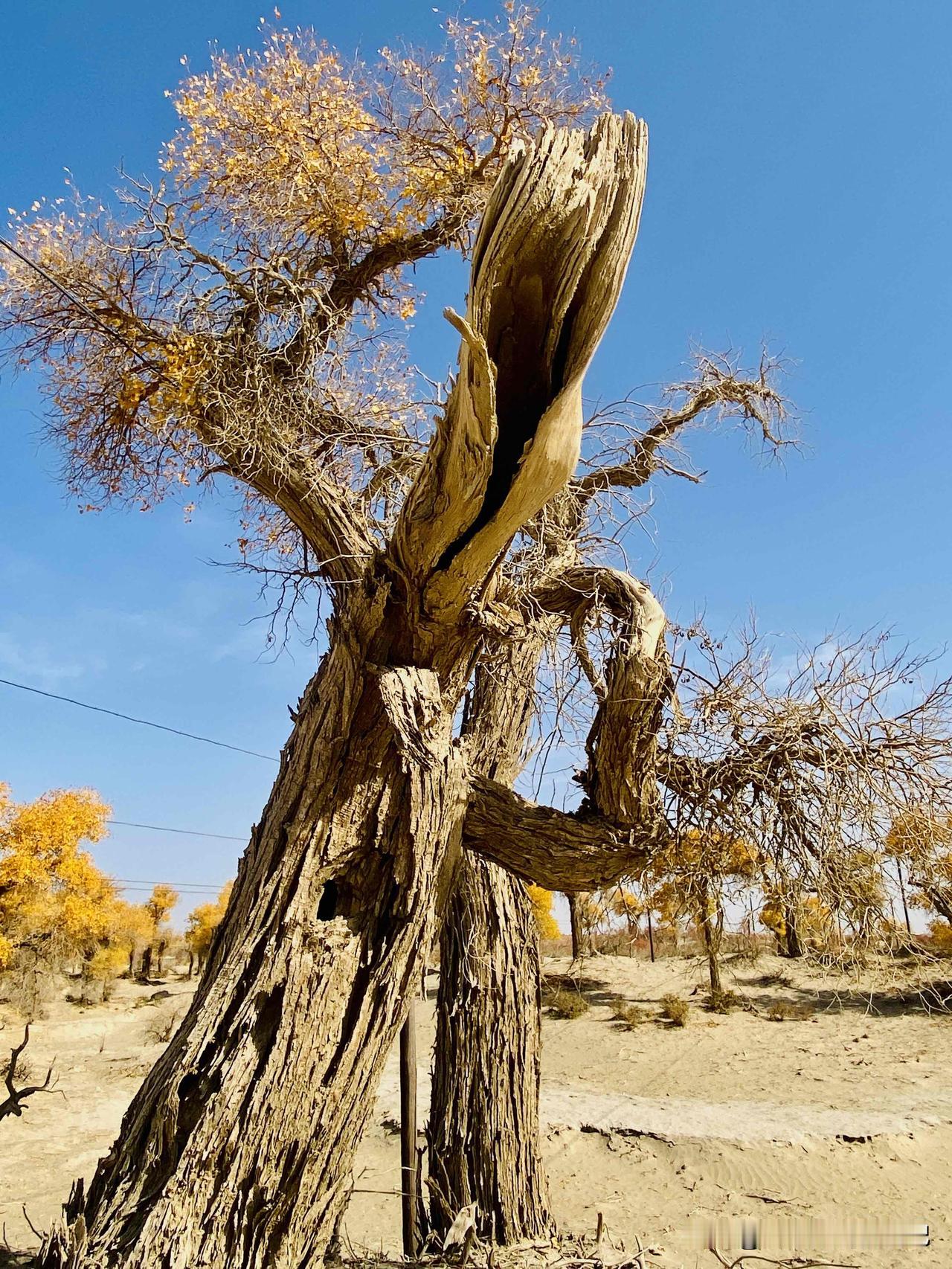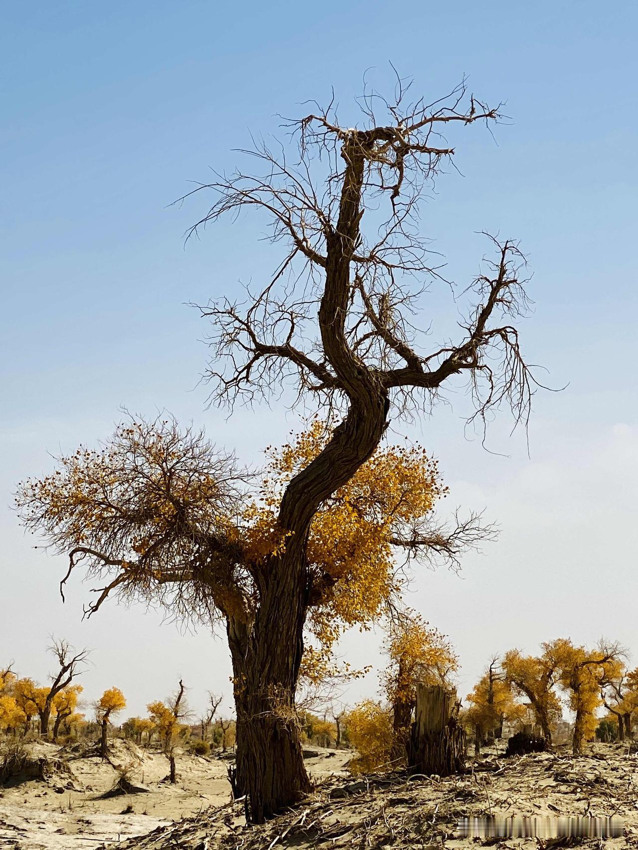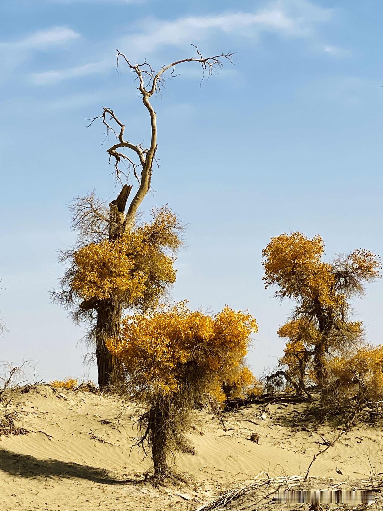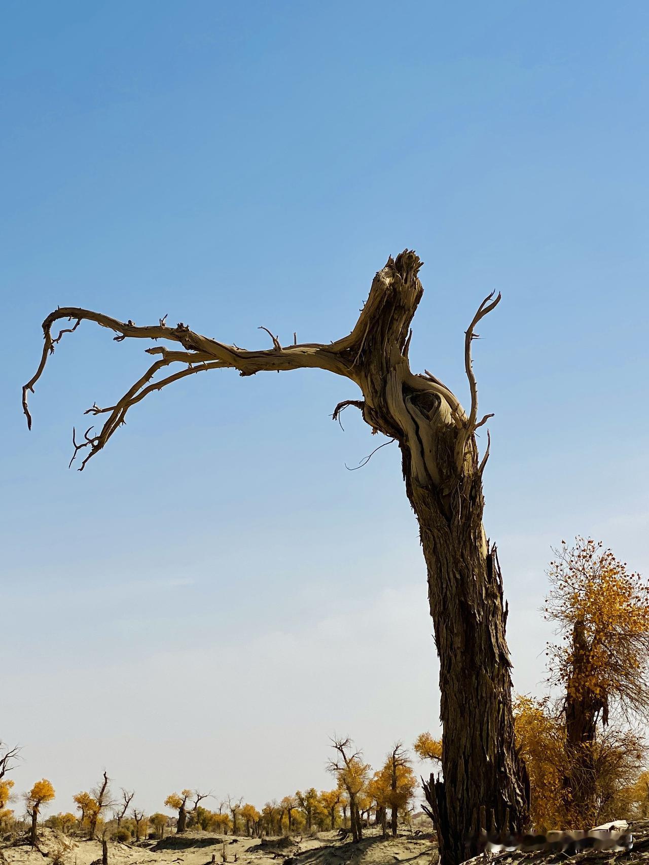 胡杨是世界上最古老的树种之一,已经在我们这个星球生存了1.3亿年。 生存于荒漠戈壁中的胡杨,它们有着三千年的坚韧生命,生而千年不死,死而千年不倒,倒而千年不腐,可谓生命不止生生不息生死相依! 这一组图片,随拍于尉犁县至若羌县G218国道旁的一处荒漠中,它们那些或倒伏的躯干、或遒劲的身姿、或焕发的生机,给予我强烈的灵魂震撼和视觉冲击,令我一时无法用言语形容心中的感触! 胡杨风景 金色的胡杨树 胡杨旅游季 秋日胡杨 胡杨奇观 胡杨