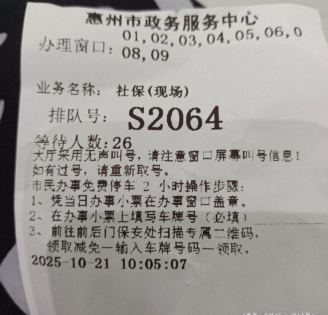 2025.10.21-星期二 逛街了 市政中心了 办事后凭领取号码单盖章,2小时