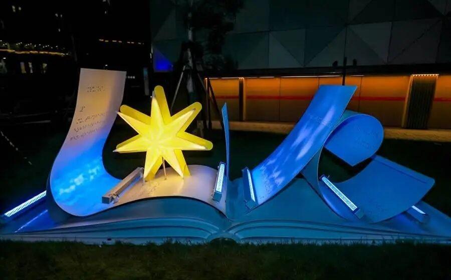 《夜来香留声》 上海荟聚五楼平台,曾带动餐厅“一痕月”人气飙升的光影装置《夜来香留声》依旧矗立。海派剪纸风格的花瓣层层叠叠、螺旋向上,暖黄灯光勾勒出“岁月留声机”般的雅致轮廓,与餐厅“老上海”装修风格相得益彰。“之前刷到光影节的照片没来得及打卡,现在随时来都能看,饭后和家人散步赏光,特别惬意。”市民张女士的感受,道出了不少人的心声。据餐厅经理介绍,装置留存后,仍有不少游客专程前来拍照,“打卡后顺带进店消费”,为餐厅带来了持续稳定的客流。 《触·光》 另一处备受关注的装置《触·光》,则完成了从商业空间到社区绿地的“温馨迁移”——从上海荟聚迁至北翟路与福泉路路口的家园绿地。夜幕降临,形似翻开“书页”的装置透出湖蓝色水波纹灯光,“书页”边缘暗藏的“LOVE”字样若隐若现,成为周边居民休闲打卡的新景点,这处装置让家门口的绿地多了“烟火气”与“艺术感”。 其余光影装置继续“驻守”上海荟聚公共区域,各具特色且贴近民生需求:有的主打互动体验,市民触摸装置表面即可触发动态光影变化,成为亲子家庭休闲游玩的热门选择;有的融入商场中,继续成为逛街的市民休憩放松的打卡点。 “留存不是简单摆着,后续维护得跟上。”上海荟聚相关负责人介绍,专业团队会定期检查装置的灯光、电路,根据季节和客流调整亮灯时间,“让光影真正贴合市民的生活节奏”。 “我们不仅追求节庆活动的短期聚光效应,更要让光影艺术成果长期常态展演、融入日常生活。”区景观灯光管理负责人表示,此次6项光影装置全部留存,既是对光影节优秀成果奖的生动实践,也是推动“艺术融入生活”的具体探索。未来,长宁区将继续以群众需求为导向,挖掘更多文化与民生融合的创新路径,让城市更有温度、更具魅力。