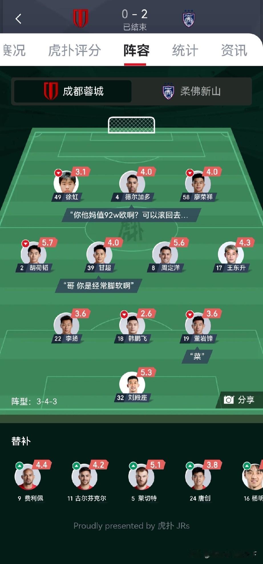 这回丢人丢到家门口了,蓉城全场一次威胁射门都没有,你要搞清楚这可是你的主场啊!这么多观众看着你们呢。 我建议以后外战应付了事,全部重心都在联赛的队就别出去踢亚冠了,给国家丢人。 我想问中超各队联赛为什么拼命争冠?争冠是为了进亚冠!但又为什么放弃亚冠?因为联赛要争冠?陷入无限的死循环中…… 不过我觉得中超的赛制也得该改改了,要不中超球队老以争冠为借口去混亚冠,而且咱们南方夏天太热确实不适合踢足球比赛。