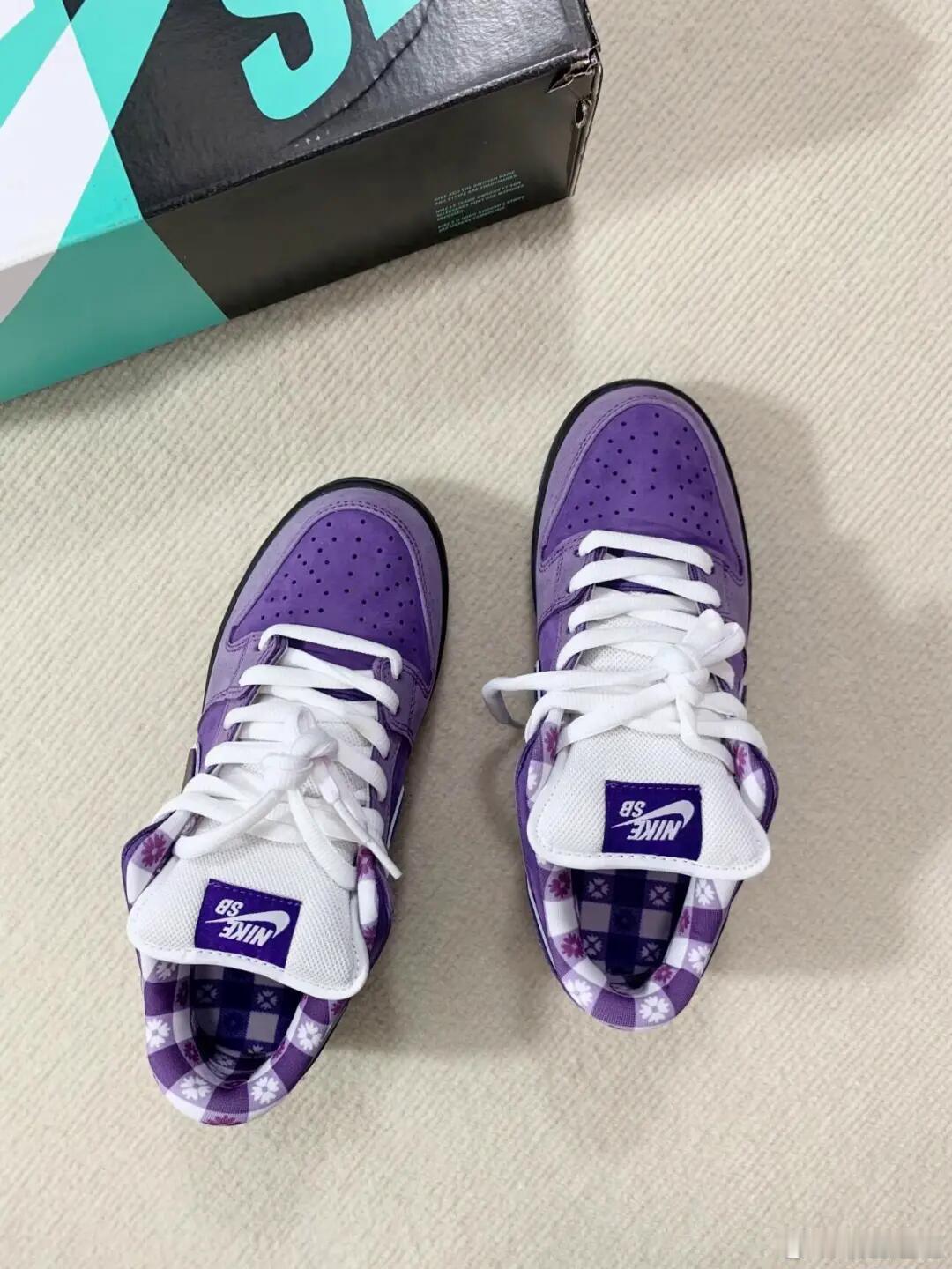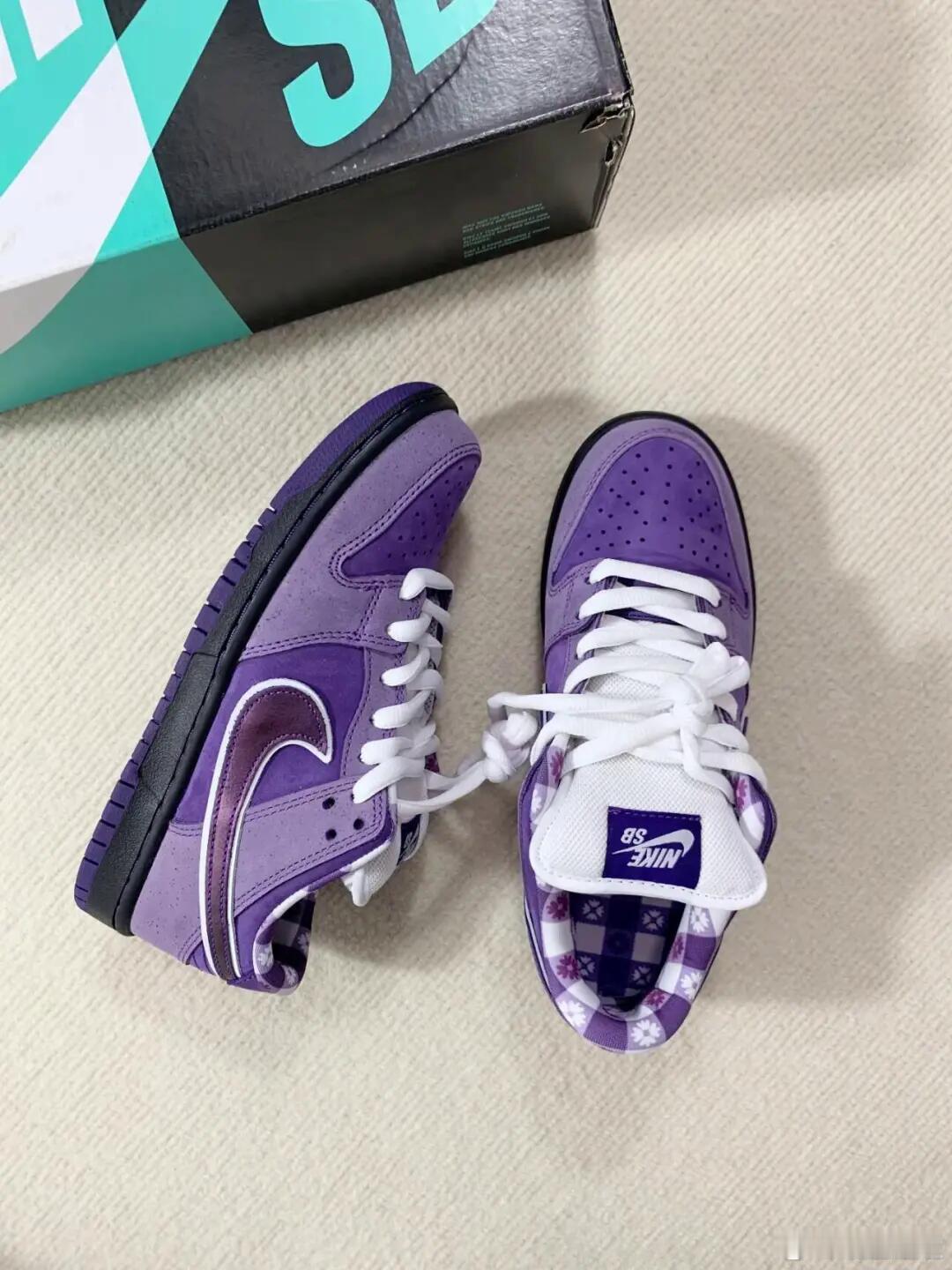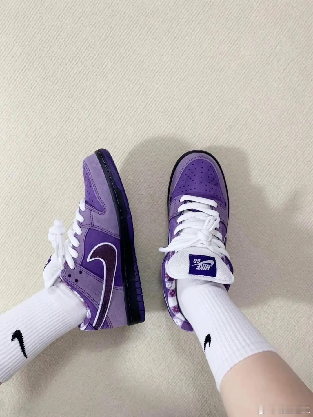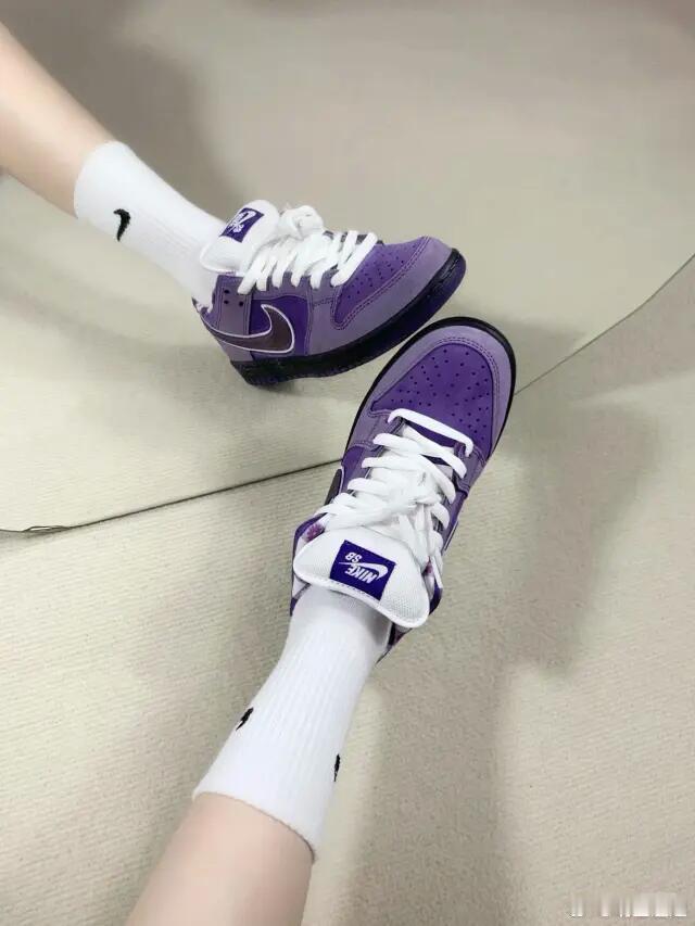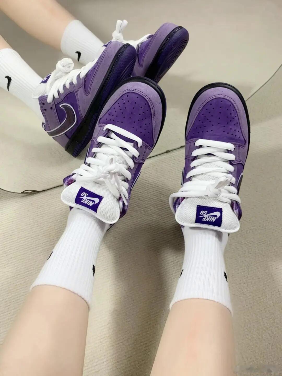 这双Nike SB Dunk Low以迷人的紫色调为主打,通过深浅不一的紫色麂皮材质,营造出丰富的视觉层次感。鞋侧标志性的银色Swoosh与白色鞋带形成鲜明对比,而蓝色鞋舌上醒目的“NIKE SB”标识则点明了其滑板鞋血统。细节处尤为用心,鞋垫边缘若隐若现的淡粉色花朵图案增添了一抹精致趣味,搭配的白色中筒袜上的黑色Swoosh也与鞋款巧妙呼应。整体设计既保留了Dunk系列的经典轮廓,又通过独特的色彩搭配和质感处理,展现出浓郁的街头潮流风格。时尚鞋履
