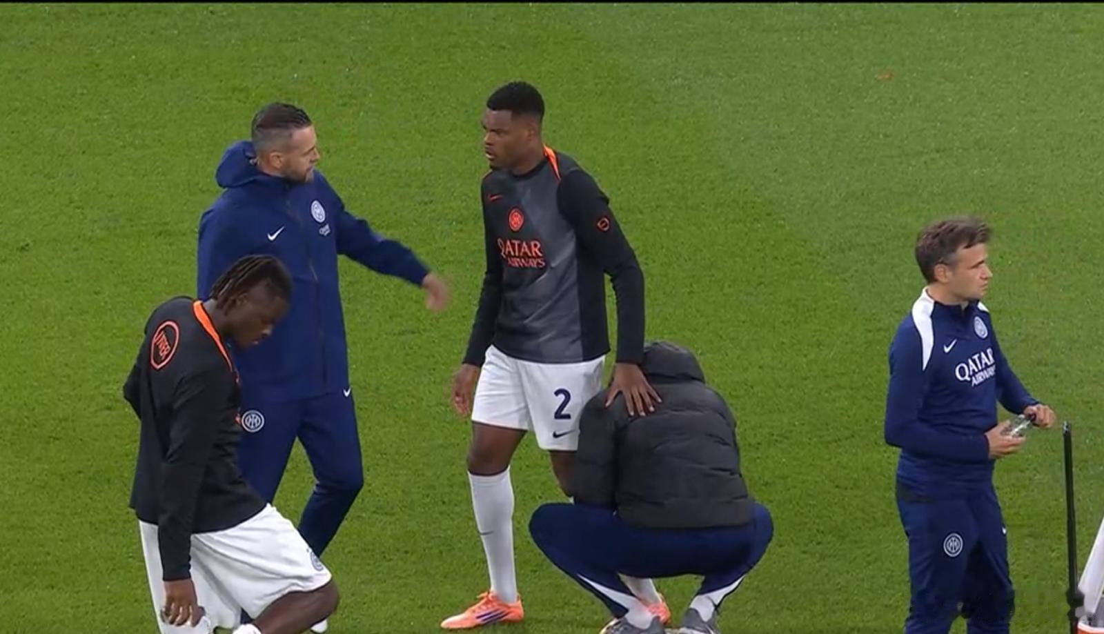 天空体育:圣吉联vs国际米兰赛前热身时出现了令人担心的情况,邓弗里斯让人按摩了