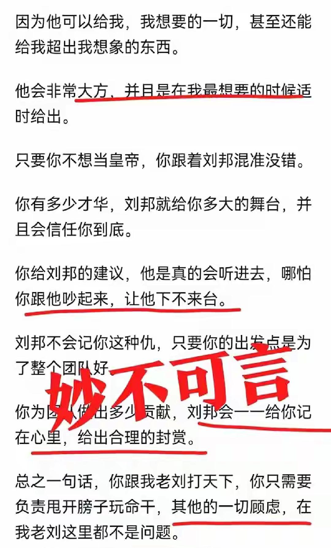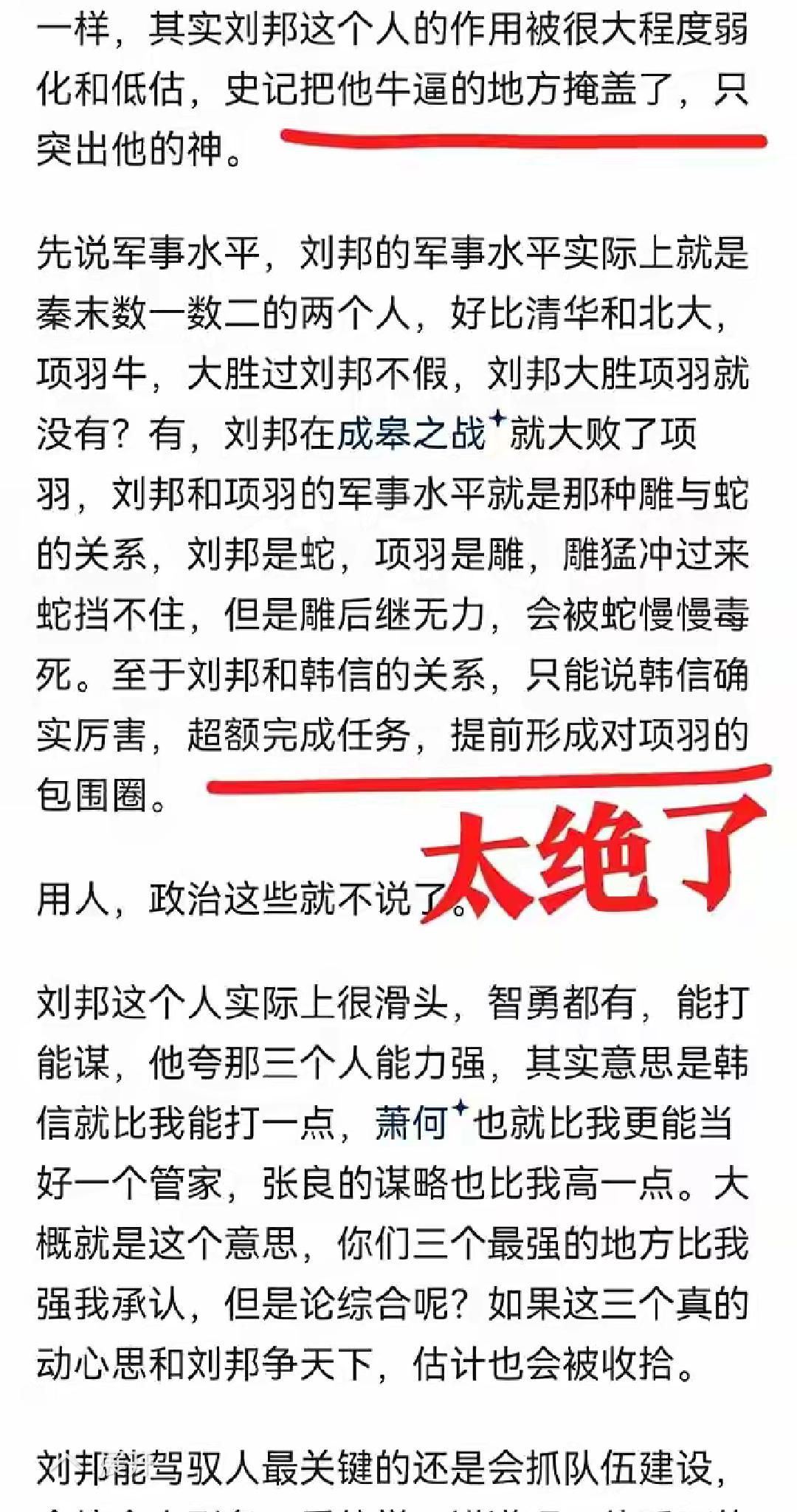 这比喻实在精妙!刘邦恰似那位单科成绩并非顶尖,却能斩获全国状元的学生。易中天也曾提及,刘邦自己都坦言比不上张良、萧何和韩信。然而,他的厉害之处就在于知人善用。 与项羽相较,项羽在占据优势时,恃勇骄横、刚愎自用且用人唯亲;而刘邦在处于劣势时,忍辱负重、善于采纳意见且知人善任。这就如同考试,单科成绩优异并不意味着总分就高。刘邦虽单科成绩不出众,但他懂得整合各方面人才的优势。最终,他以总分740的佳绩赢得天下,这用人之道着实高明。 刘邦传奇人生 高帝刘邦 高皇帝刘邦