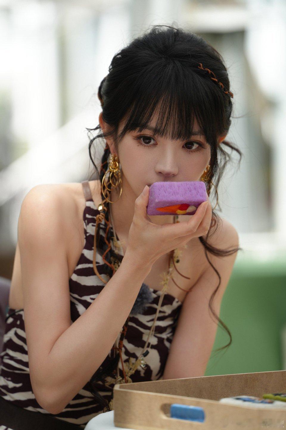 田曦薇这个豹纹吊带谁懂简直是小猫鸡尾头和大耳环真的好搭,给小田穿这一身的简直是