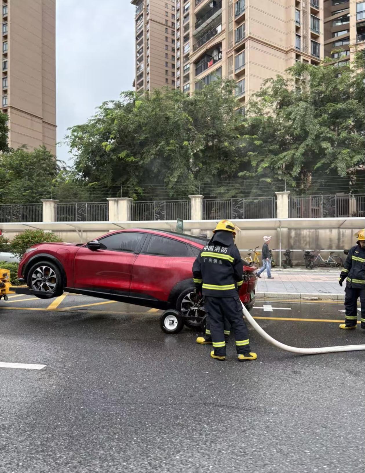 电马还是有技术的,起火后,消防员还成功把它给浇灭了! 这修修还能开!​​​
