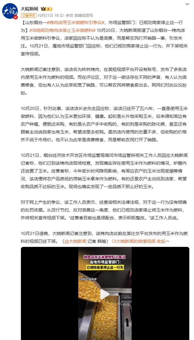 当地规劝烤肉店停止玉米做燃料从燃烧效率看,玉米比炭火低;从成本看,玉米却更省钱。这烤肉店用玉米燃料,是该被鼓励的特色经营,还是该被批评的浪费行为?真让人纠结,求个清晰的答案呀。