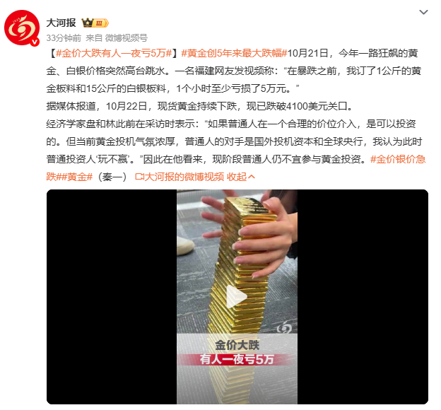 黄金创5年来最大跌幅60% 年涨幅后的闪崩,再次证明了投资市场没有永远的神话。黄金作为传统避险资产都如此大起大落,还有什么是绝对安全的?这也给广大投资者敲响了警钟,资产配置要多元化,不能把鸡蛋都放一个篮子里。大家在投资中都有过哪些 “血的教训”?