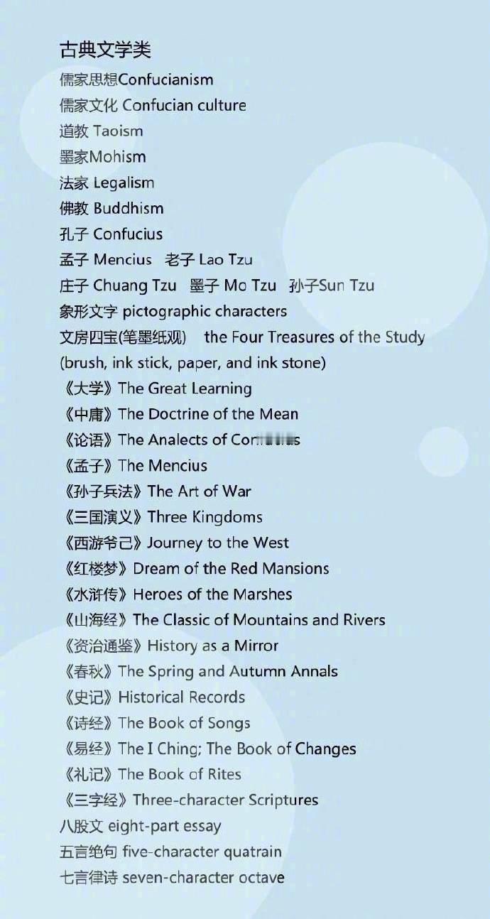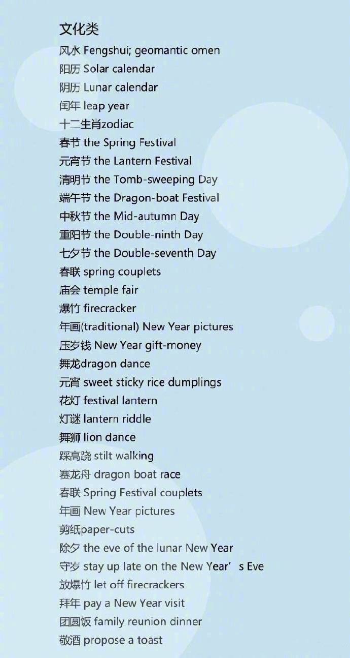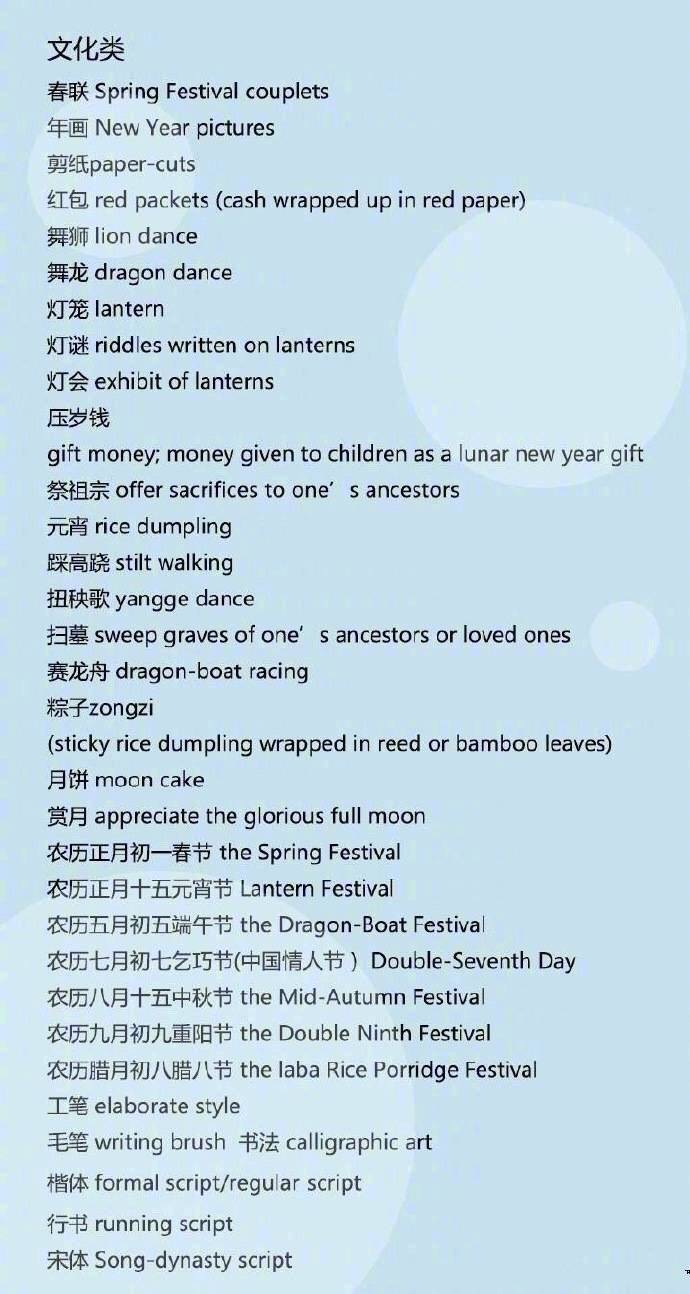 【古典文化类英汉翻译词汇大全】适用于四六级、雅思托福、考研、出国的翻译大全。