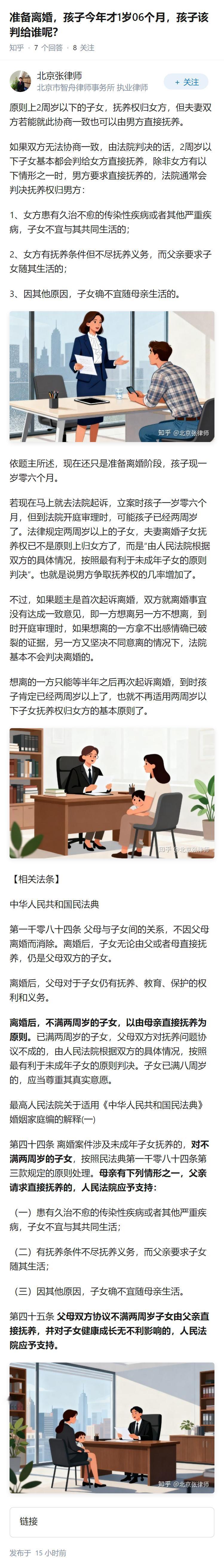 准备离婚,孩子今年才1岁06个月,孩子该判给谁呢?