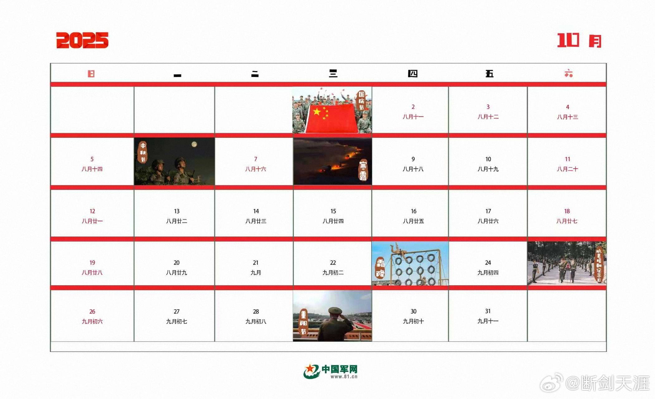 军旅萌漫日历丨丹桂飘香山河入画,战士以忠诚筑就长城