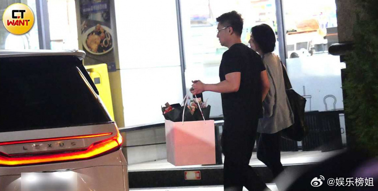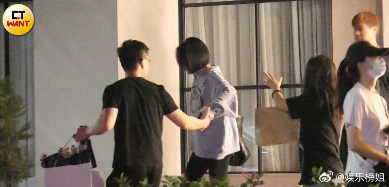 许雅钧牵着小S小S全家聚餐庆祝小S获金钟奖,结束后许雅钧拿鲜花,温柔牵着小S的