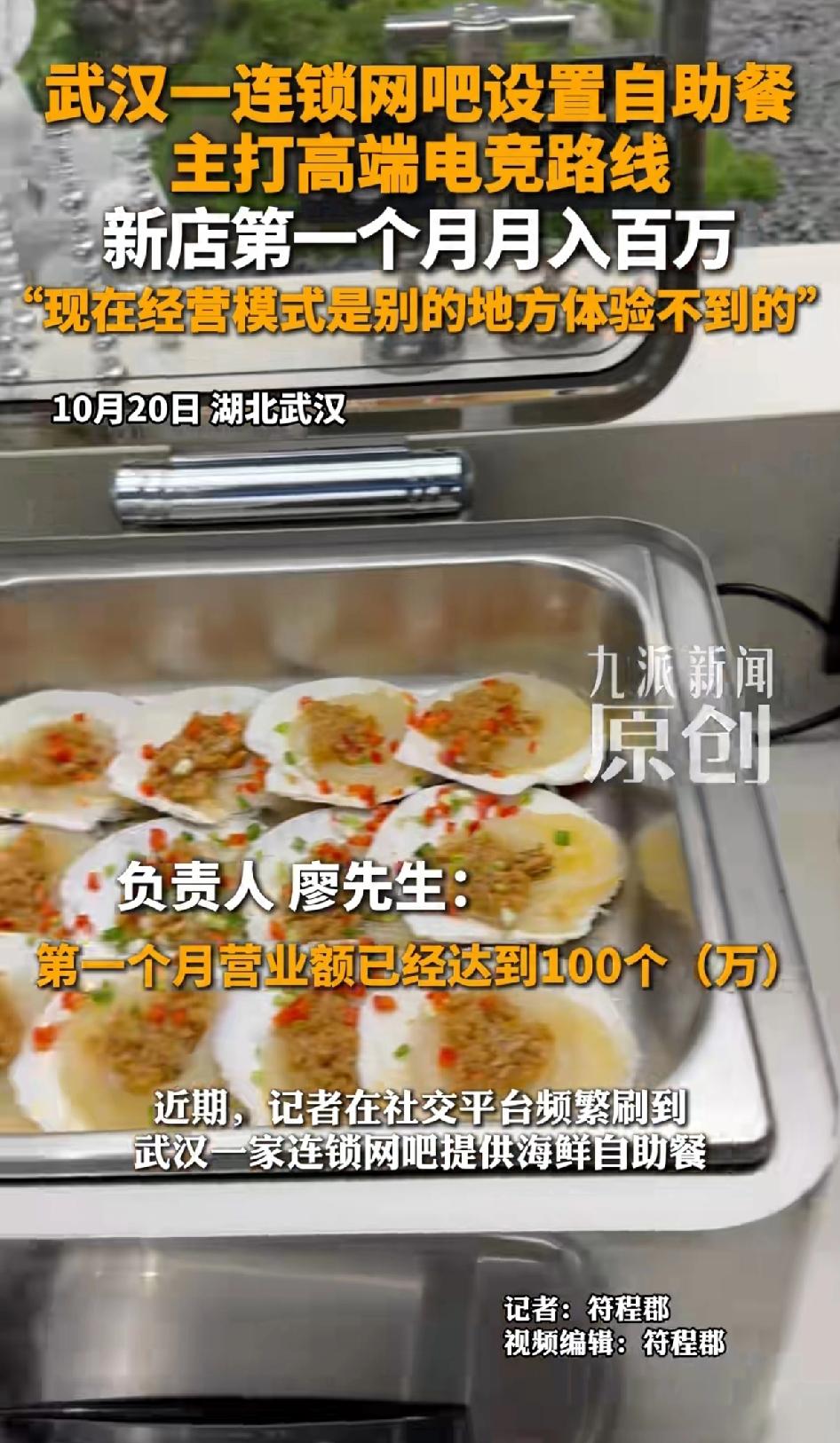 武汉一连锁网吧设置自助餐,主打高端电竞路线!竟然搞起了海鲜自助,还主打高端电竞路线,真是卷出天际! 网吧负责人表示新店第一个月营业已经达到100万。 现在这种经营模式是别的地方体验不到的。 这海鲜自助由大厨现做,单买 68 元,新顾客或充值 200 元能获赠一餐,住店可免费吃三餐。餐品有螃蟹、扇贝等 7 个菜,还有水果点心。 有常客说充值或包夜能拿自助券,省了外卖钱。 网吧总面积约三千平,有电竞区、胶囊和酒店。电竞区每小时 15.9 - 35 元,还有免费淋浴、洗衣烘干服务。 上网费虽比普通网吧高,但有这增值服务,也难怪有人愿意来。不得不说,这网吧的生意经挺妙! 网吧听着是传统生意,可老板就是敢于创新!眼光不同,敢于投资! 现在的去玩电竞的应该是年轻人偏多。 年轻人消费观又不同,挣钱方式也是另辟蹊径。你也不知道人家的钱是怎么来的! 但对自己绝对不吝啬!舍得给自己花钱,挣了钱也舍得享受! 不像60-、70、80后挣了钱不舍得花。都要揣兜里,想着一家老小!