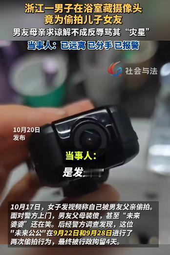 10月20日浙江,女子在男朋友家洗澡,想拿自己的面膜时,摸到一个发热的剃须刀,她觉得很奇怪,就看了一下,结果发现是一个摄像头,她马上意识到是未来公公偷拍她,她赶紧跟未来婆婆说。 婆婆竟然笑着替丈夫辩解,女子震惊,就报了警,结果未来婆婆就骂她是灾星。 2025年10月浙江某派出所的调解室里,小敏盯着桌上的摄像头,指尖冰凉。 民警刚宣读完处罚决定:未来公公因偷拍隐私,被行政拘留4天。 可没等她松口气,未来婆婆就冲进来指着她骂:“你这灾星,好好的家被你毁了!”男友站在一旁,只敢拉着母亲的胳膊说“别生气”,连一句维护她的话都没有。 小敏想起几小时前,在男友家浴室发现摄像头的瞬间。 当时她擦着头发找面膜,指尖触到温热的“剃须刀”时,还以为拿错了东西。 她把东西翻过来,才看见侧面藏着的小孔,孔里的镜头正对着淋浴区。 那一瞬间,她感觉全身的血液都凝固了,连呼吸都变得困难。 她攥着摄像头冲出浴室时,未来婆婆正在厨房洗碗。 “妈,您看这是什么!”小敏的声音带着哭腔,把东西递过去。 婆婆擦干手接过,看了一眼就笑着说:“嗨,不就是个剃须刀嘛,你爸老忘东西。” “可这是摄像头!对着淋浴区!”小敏急得提高声音,婆婆的笑容却僵住了。 接下来的对话,让小敏彻底寒了心。 婆婆拉着她坐在沙发上,语气软下来:“孩子,你爸就是一时糊涂,怕家里进贼。” “他没坏心眼,你别往心里去,这事咱们私下解决,别报警行不行?” 小敏看着婆婆眼里的恳求,差点就点头,可一想到自己可能被拍了6天,又咬着牙拒绝了。 报警电话接通的那一刻,小敏听见身后传来婆婆的叹气声。 民警上门后,未来公公从卧室出来,看到摄像头就慌了神。 “这……这不是我的,是我在路边捡的,不知道是摄像头。”他结结巴巴地辩解。 民警拿起摄像头检查,发现里面还存着近一周的视频,拍摄角度全是淋浴区。 调取设备购买记录时,真相再也藏不住了。 民警查到,这个摄像头是公公9月20号在网上买的,22号就装在了浴室。 过去6天里,他还登录过设备后台,查看了两次拍摄内容。 面对铁证,公公终于低下头,说“就是好奇,没别的想法”,可这话没人相信。 处罚结果出来后,婆婆的态度彻底变了。 她不再假装温和,当着民警的面就骂小敏:“你怎么这么狠心?非要让我们家丢脸!” “我儿子真是瞎了眼,找你这么个麻烦精,赶紧分手,我们家容不下你!” 小敏看着男友,希望他能说句公道话,可他只是低着头,反复说“别吵了”。 那天下午,小敏收拾行李时,男友终于开口挽留。 “小敏,我知道我爸错了,我妈也只是气话,你再给我一次机会好不好?” 小敏把最后一件衣服塞进箱子,摇了摇头:“在你家,我的隐私不如你爸的‘好奇’重要。” 她想起刚住进来时,公公每天早上会给她煮湖北米粉,说“听我儿子说你爱吃”。 现在才明白,那些看似温暖的细节,背后可能藏着不为人知的算计。 搬去闺蜜家后,小敏失眠了好几天。 每次洗澡,她都会下意识地检查浴室的每个角落,生怕再看到摄像头。 闺蜜陪着她去看心理医生,医生说她有轻微的创伤后应激反应,需要慢慢调整。 好在小敏很坚强,她开始规律作息,还报了瑜伽班,慢慢走出阴影。 她知道,有些伤害一旦造成,就再也无法挽回,勉强复合只会让自己更痛苦。 如今小敏已经回到湖北老家,在老家的县城找了份文员的工作。 每天下班,她会陪父母散步,周末还会约朋友去爬山,生活慢慢回到正轨。 只是偶尔看到剃须刀,她还是会想起那段不愉快的经历,心里泛起一阵恶心。 但她不后悔当初报警的决定,因为她知道,只有勇敢维护自己的权益,才能避免更多伤害。 民警后来告诉小敏,像她这样的情况其实不少,很多受害者因为怕影响感情选择沉默。 可沉默只会纵容坏人,只有及时报警,才能让犯错的人受到惩罚。 小敏也想提醒更多女性:在感情里,别轻易放弃自己的底线,当隐私被侵犯时,一定要勇敢站出来,因为你的妥协,换不来真正的幸福。 官方来源:重庆社会与法频道 2025年10月20日