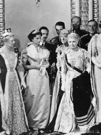 老照片 1953年,刚刚新婚不足两个月的卢森堡大公储夫妇(后来的卢森堡大公让和大公夫人约瑟芬·夏洛特)代表卢森堡出席英国女王伊丽莎白二世的加冕典礼,在大合影里,站在姐姐和姐夫身后的是代表比利时出席典礼的比利时列日亲王阿尔贝。