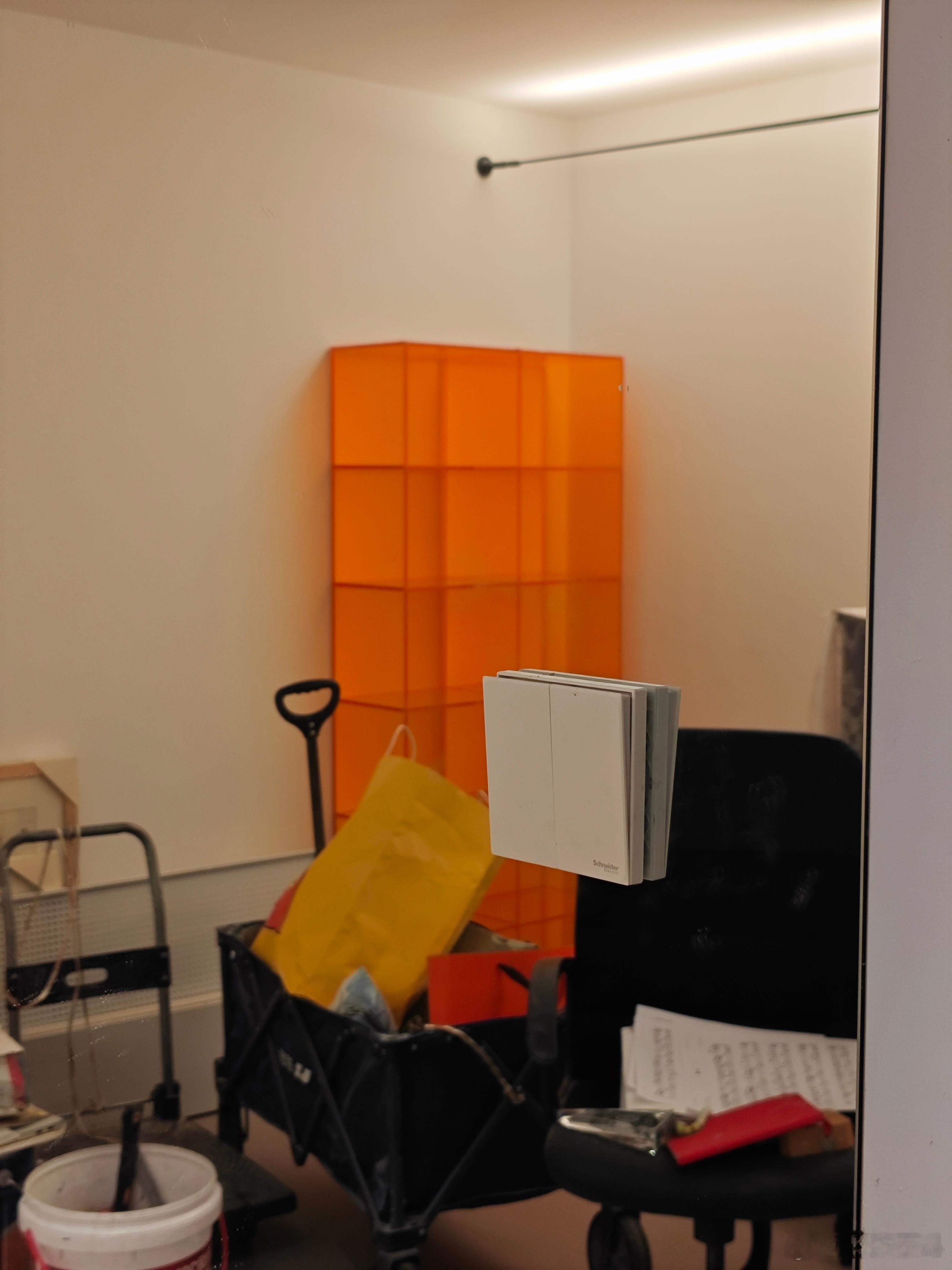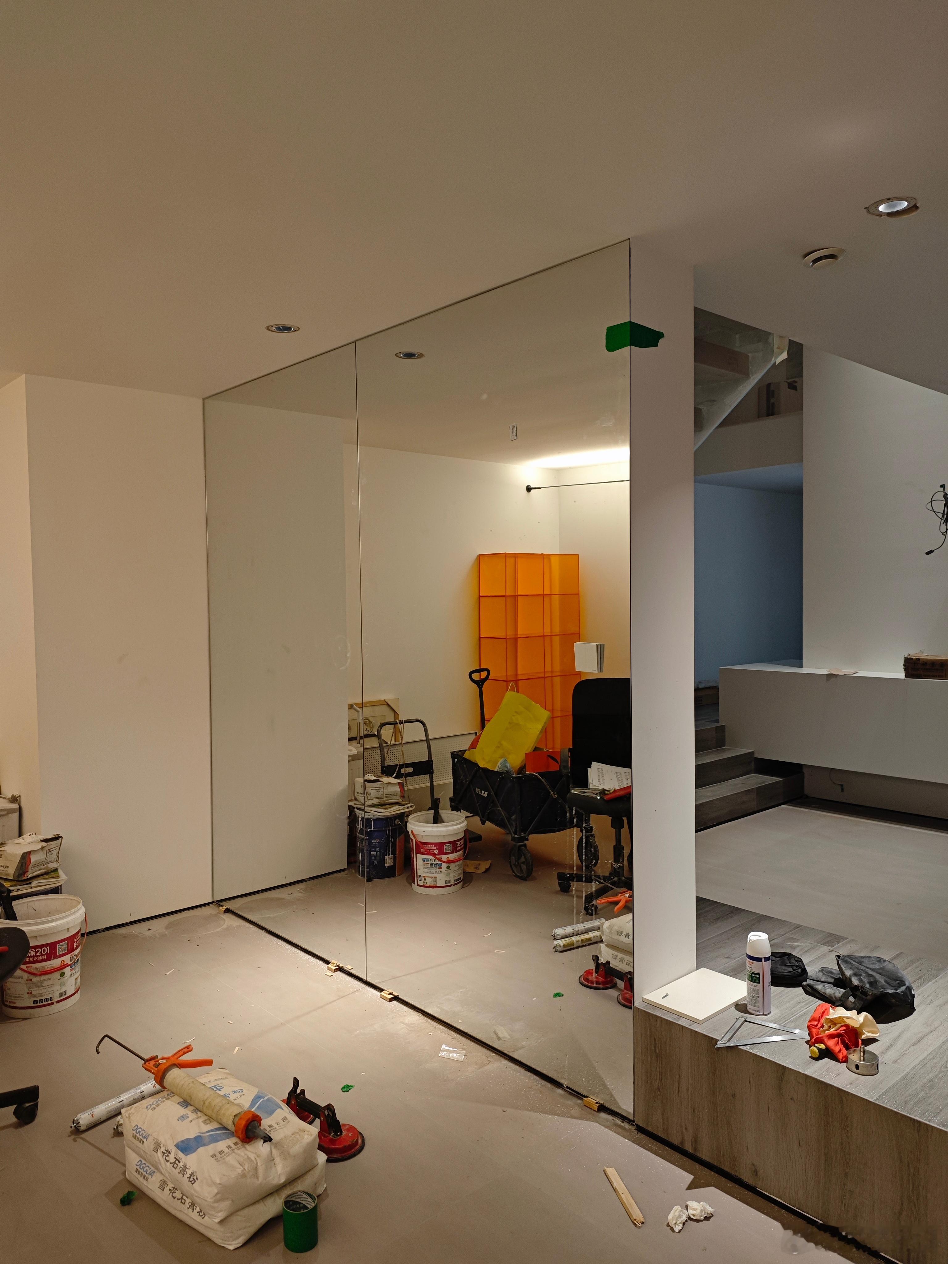 楼下镜子终于来安装了,开关看起来还是有点突兀,没更好的位置放了[允悲]装修日记