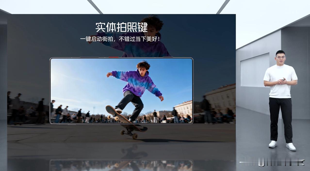 街拍环境相对复杂,23mm取景构图会显得比较杂乱,努比亚Z80Ultra35mm则很容易突出拍摄主体,让环境成为人物的最佳搭配,街拍更出片。 和友商一英寸主摄实拍对比:23mm同距离下拍摄须数码变焦1.5倍才能输出与35mm一样的构图画面,但像素却相当于只有2200万。努比亚原生35mm则可以直出5000万像素高清画质照片,影像素质超越不止一英寸。 实体拍照键支持专业双行程,无需解锁长按快门键就可以快速启动人文街拍。