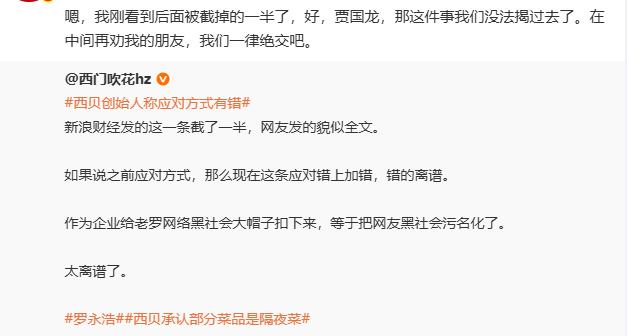 老罗宣布全面开战西北贾总,直骂贾总智力方面有问题[泪奔] 贾总这几天估计是吃不好,睡不好,愁死了 自己亲自下场来澄清舆情,没想到越描越黑 气急败坏下,把矛头全部指向了老罗,认为这是老罗挑起的 所以即使他道歉了,写到一半还是忍不住骂了老罗为网络黑社会 看来,贾总是真的吞不下这口气[捂脸] 一边道歉一边骂人,这很特朗普啊 就是不服,导致自己思维混乱哈哈 道歉不像道歉,认怂也不像,硬刚也没效果 静观二人第三局的较量,看一直无败绩的老罗这次的表现了 贾总,准备好接招了吗[捂脸]