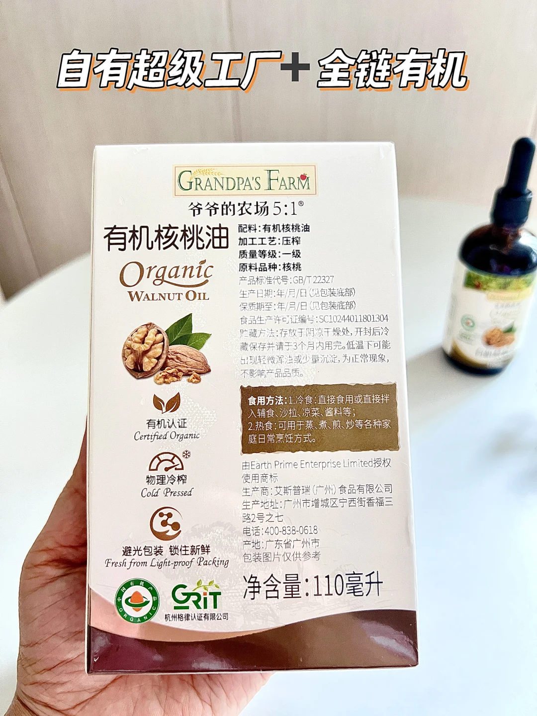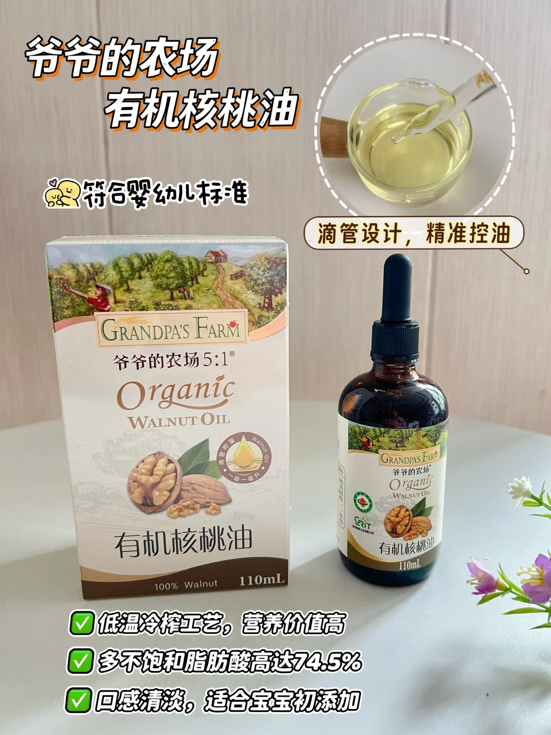 我家平时搭配着辅食吃的宝宝辅食油,是爷爷的农场有机核桃油