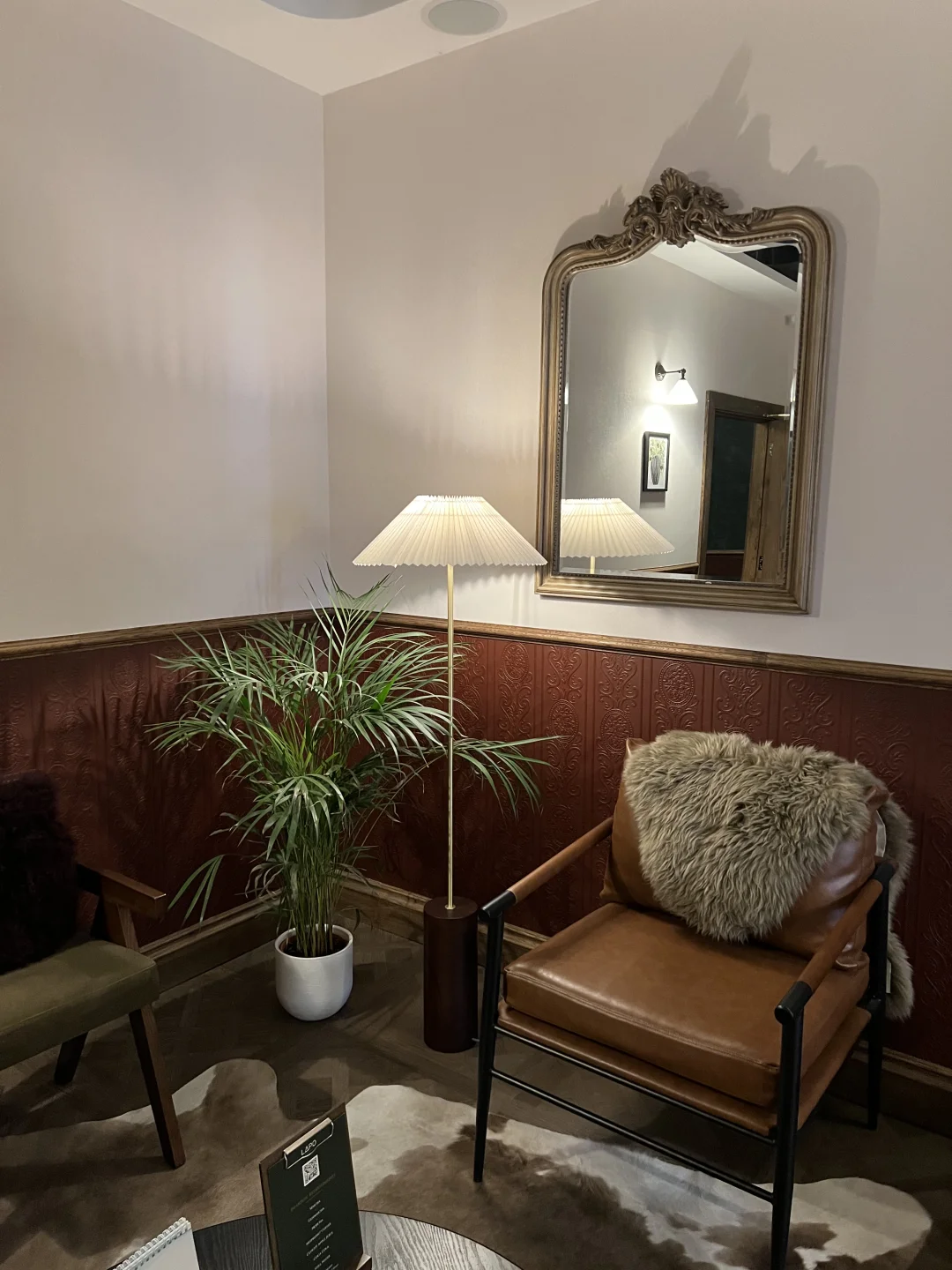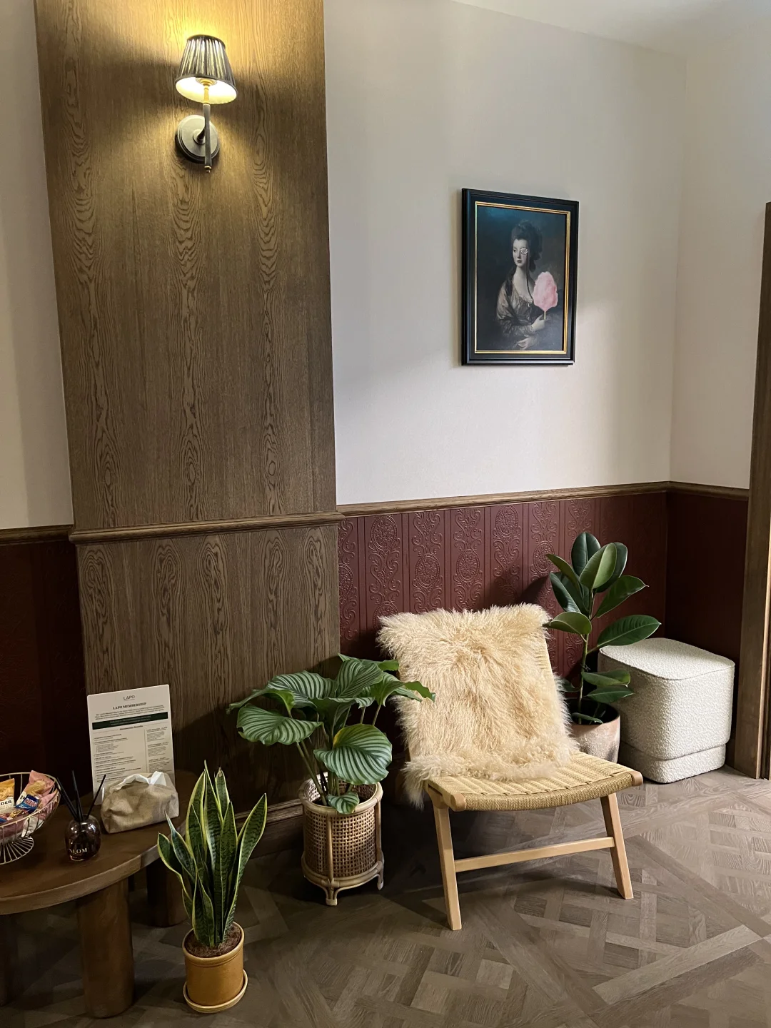 这家店藏在离Oxford circus不远处的街区的一角,Lapo skincare 是那种看到门面就想走进去看看的店,店内是温柔的复古风,奶油色墙面、老式木柜、柔黄灯光,非常让人放松。
