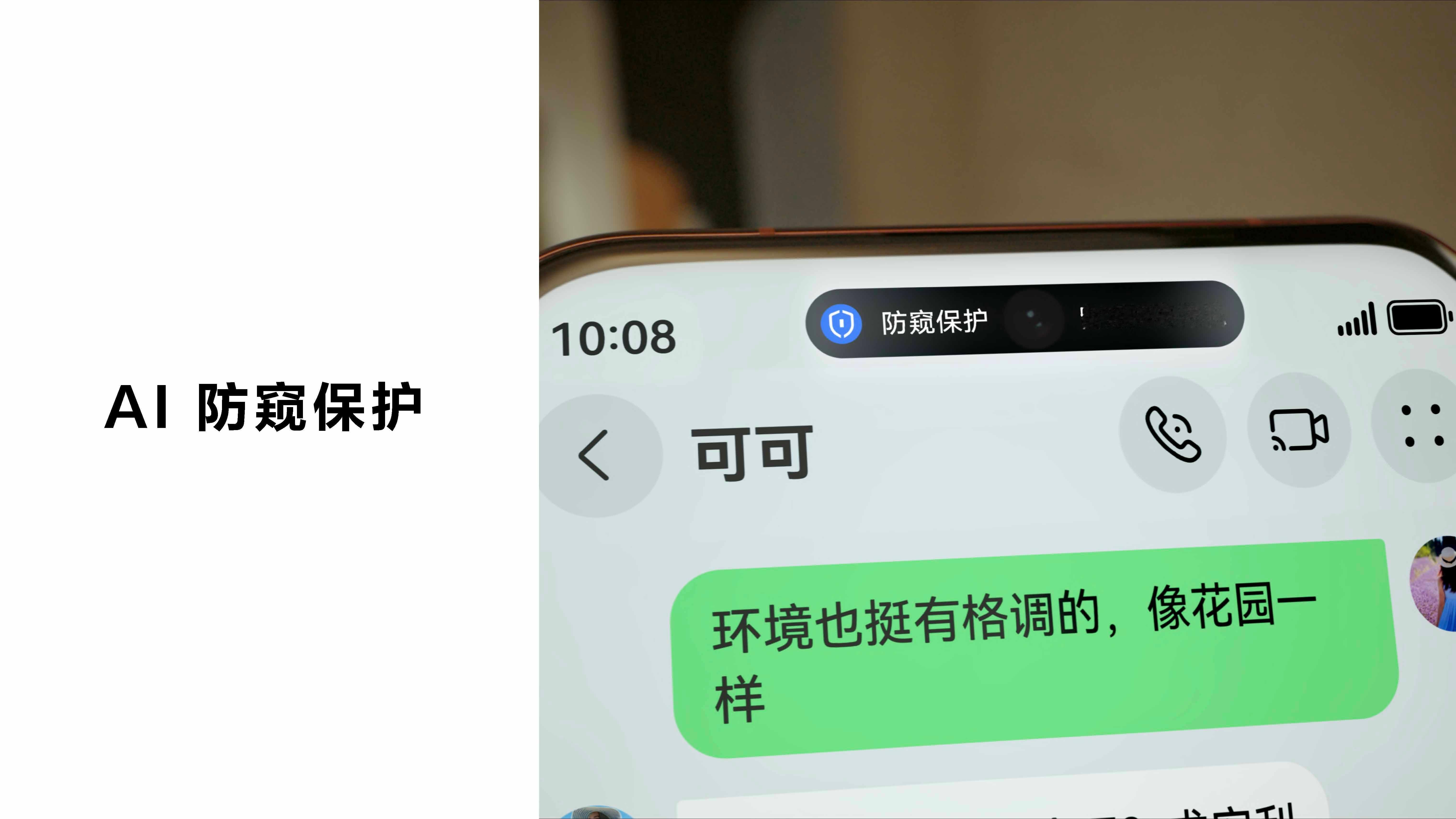 通勤时还可以开启AI防窥,在人多的户外环境,屏幕也会瞬间模糊微信聊天记录或支付界面,真正保护你的隐私不被窥看。