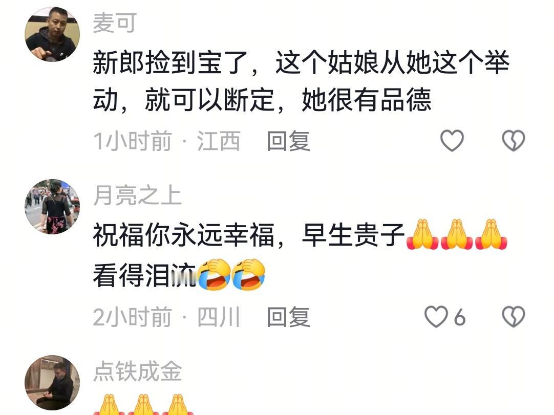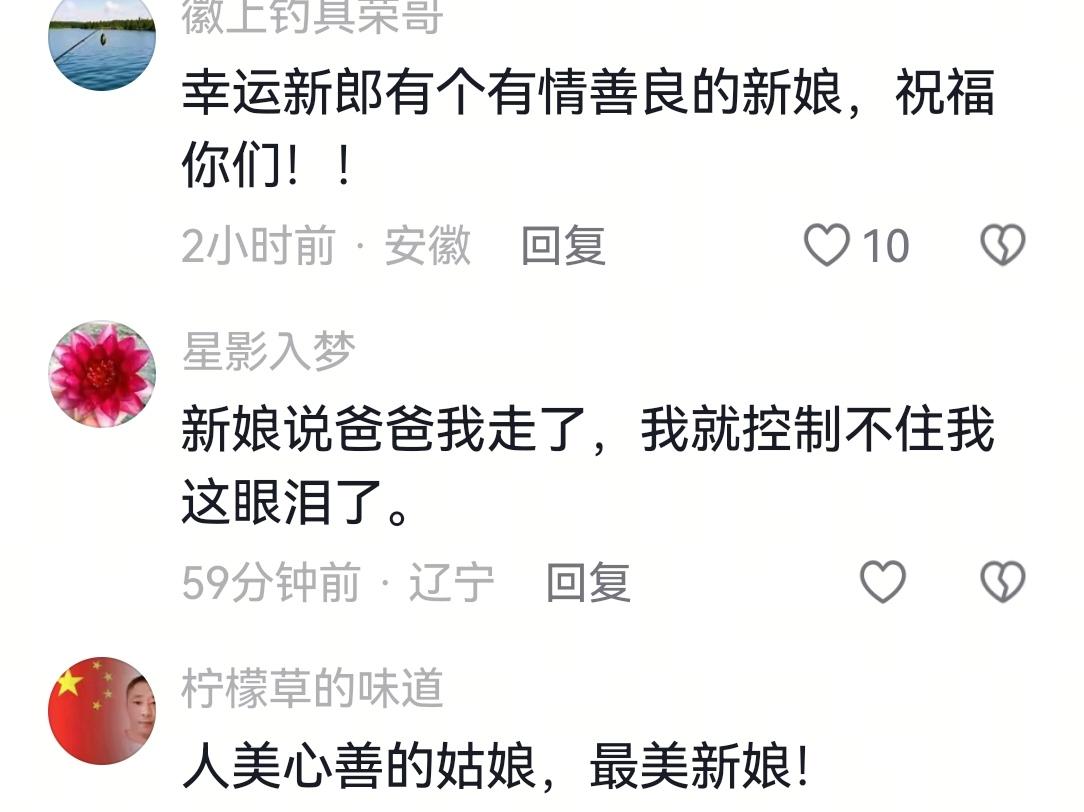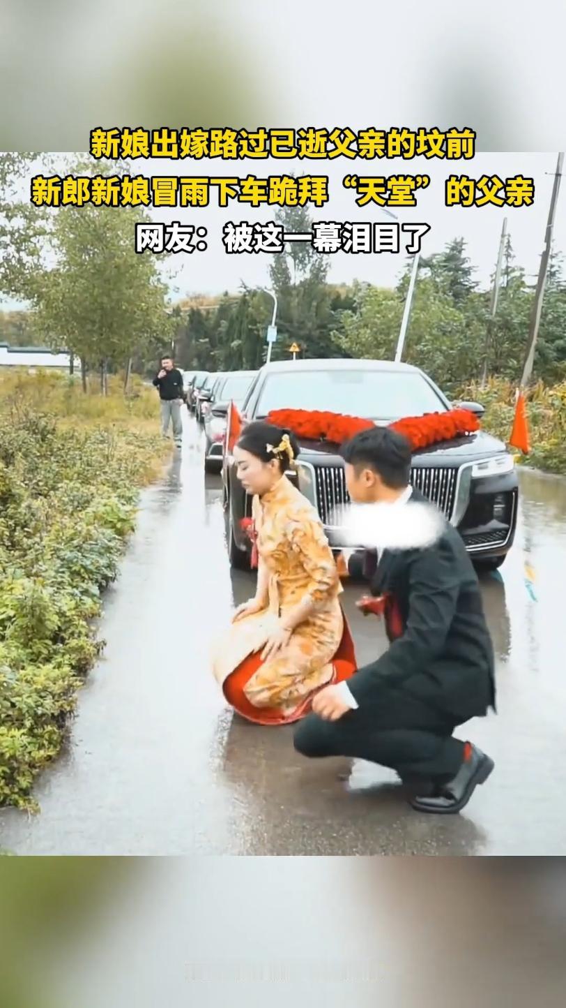 泪湿婚纱!徐州婚车路过父亲坟前急停,新娘携新郎跪拜,这场迟来的告白看哭全网 近日,徐州乡间的雨丝织成朦胧水幕,一辆婚车的雨刷器不停摆动,当缓缓路过田埂间父亲的坟前时,车辆突然稳稳停下。驾驶座旁的新娘红着眼眶望向窗外,轻声说:“爸在这里,我想跟他说句话。” 车门推开的瞬间,雨水便打湿了新娘洁白的婚纱裙摆,泥点顺着裙角悄悄蔓延,她却顾不上擦拭,只紧紧拉着新郎的手,快步走向坟茔。那是她的父亲——曾手把手教她走路、满心欢喜许诺送她出嫁,却终究没能等到这一天的人。两人在坟前双双跪下,湿软的泥土漫过裤脚,新娘哽咽的声音混着雨声响起:“爸,我今天结婚了,他会好好照顾我,您放心吧。”说完,她将额头深深抵在地面上,久久不愿起身,仿佛想通过这短暂的停留,把满心的牵挂都讲给父亲听。 身旁的新郎全程没有多言,只是挺直脊背,朝着坟茔郑重磕下三个头。这沉默却坚定的动作,藏着对长辈的敬重,更藏着“往后替您护她周全”的承诺。据悉,新娘本想婚前专程来祭拜父亲,可婚礼筹备的琐事繁杂,计划一再耽搁,直到婚车路过这片熟悉的坟前,积压多日的思念再也无法抑制。按当地有些风俗,新娘出嫁途中不宜随意下车,但在这份跨越生死的牵挂面前,所有规矩都化作了理解与动容——婚礼上“二拜高堂”少了父亲的身影,她便用这场跪拜,补上迟来的感恩。 这段视频传到网上后,瞬间戳中无数网友的泪点。有人留言:“我结婚时没能见外婆最后一面,看到这一幕瞬间想起她,眼泪止不住地流”;有人感慨:“这份不忘本的孝心,才是婚礼最珍贵的仪式”;更有人为新郎动容:“他跪下的那一刻,就知道新娘没嫁错人”。 雨还在下,新郎轻轻扶起泣不成声的新娘,小心翼翼地为她擦去脸上的雨水与泪水。婚车重新启程,朝着充满希望的未来驶去,田埂间的坟茔静静立在雨雾中,仿佛在默默回应这份深沉的牵挂。正如网友所说:“真正的美好,从不是流于表面的规矩,而是孝心被珍惜,爱意有传承。”这场雨中的跪拜,藏着最动人的亲情与深情,也让无数人读懂了爱与思念的重量。
