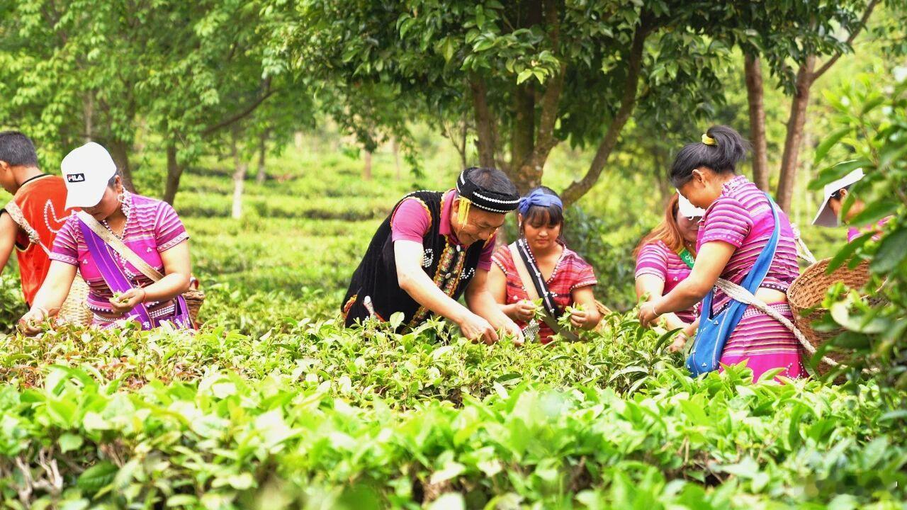 整整八年后,2025年,走进黑珍珠的老家——云南省普洱市西盟县勐卡镇,这里有一个莫窝国际有机认证茶园基地,一行行茶树整齐排列,蓬勃地冒出嫩绿的芽头,头戴帽子、身背竹篓的采茶村民们正穿梭在茶园间,熟练地采摘着嫩芽,整个茶园呈现出一片生机勃勃、丰收在望的景象。
