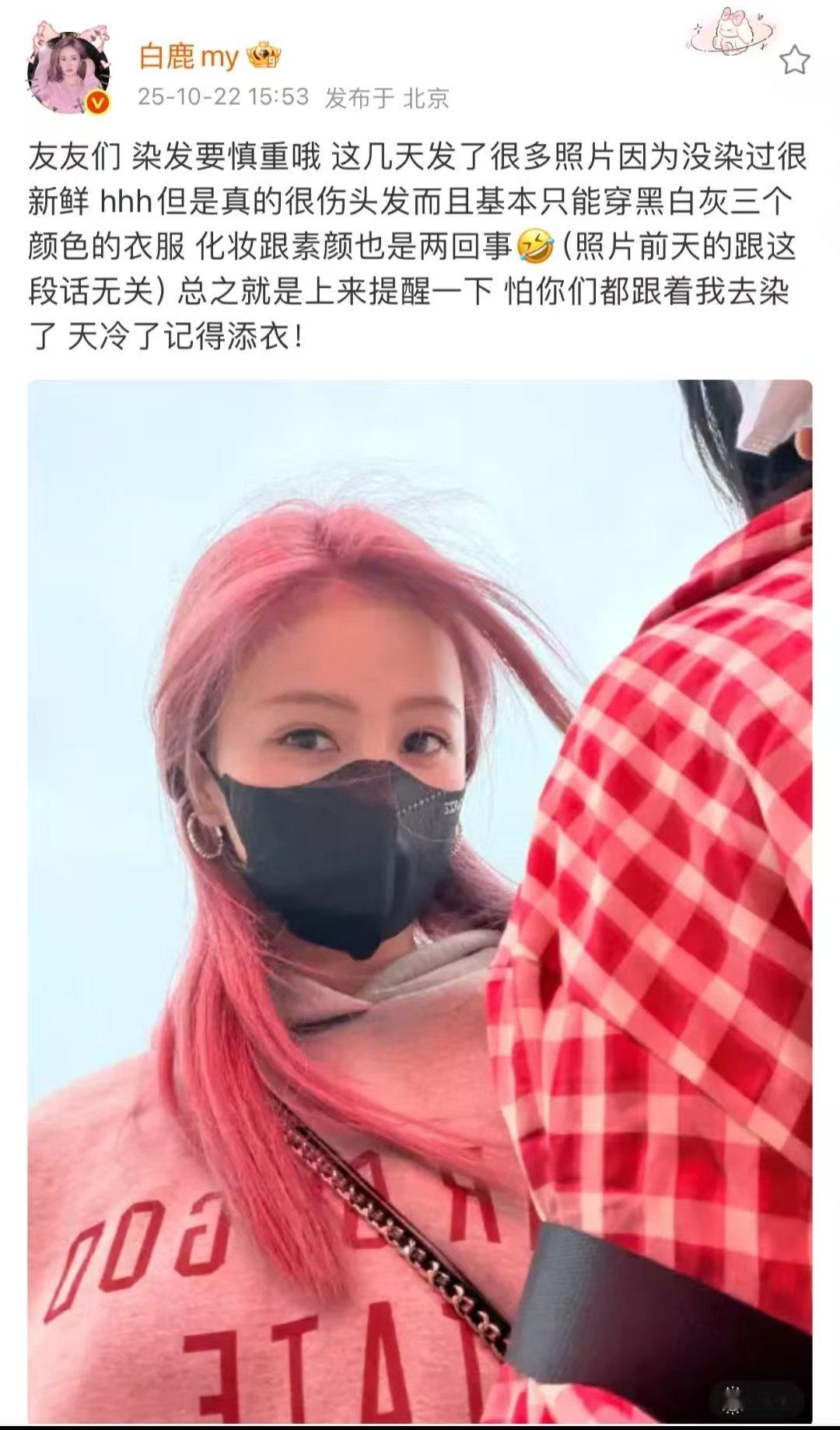 白鹿染发要慎重哦白鹿说染发真的很伤头发贴心白鹿上线提醒,说染发真的很伤头发。