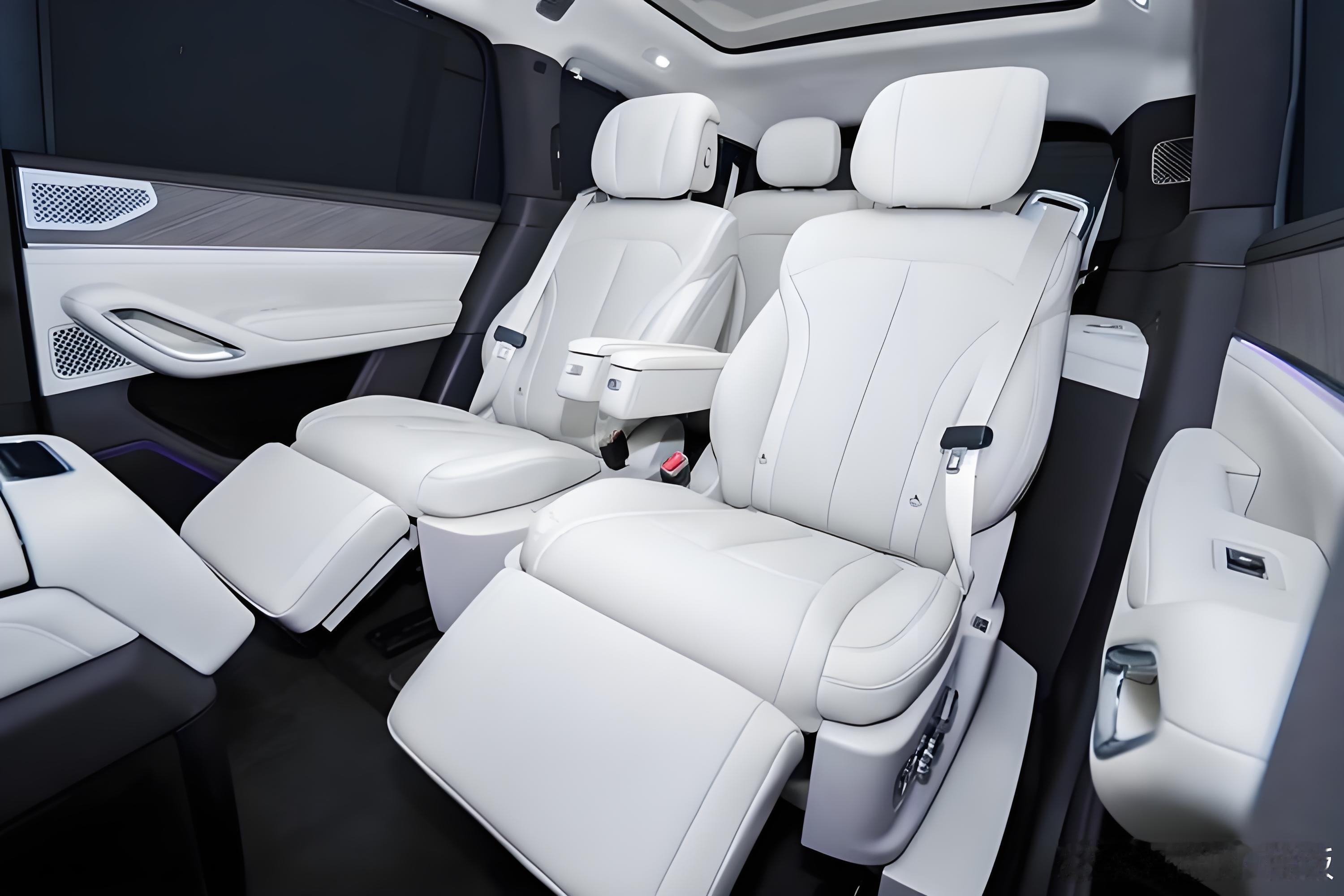 但往不好的方面说,腾势 N9 跟德国高端 SUV 一样,空间利用率非常低。中排座椅先不说没有零重力功能,就连找个舒服的半躺姿势也困难。因为靠背后有个巨大的轮拱,导致靠背和坐垫调节并不独立,会相互干涉。例如靠背往后调,坐垫就逼着你往前。