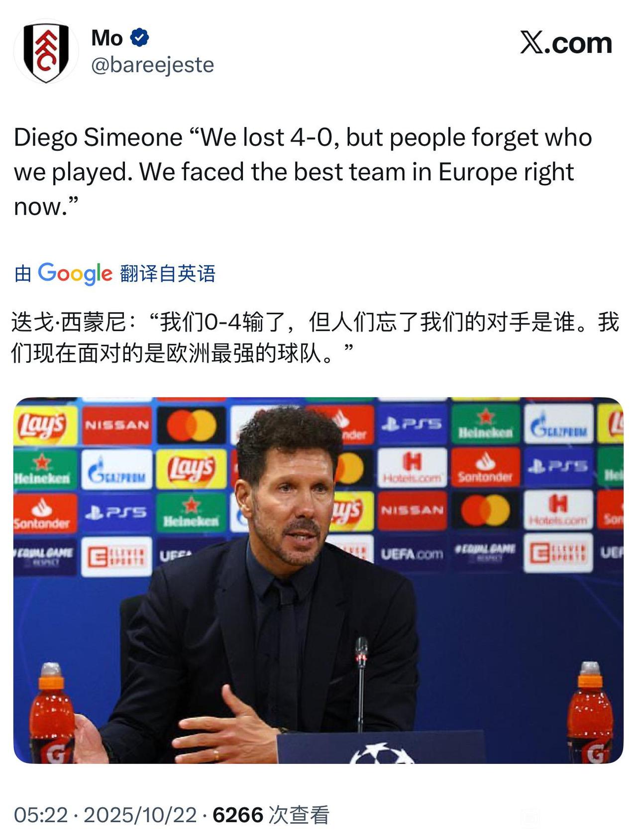 欧冠0:4惨败不可怕,赛后西蒙尼的一番话才值得深思。欧冠改制以后,大部分惨案