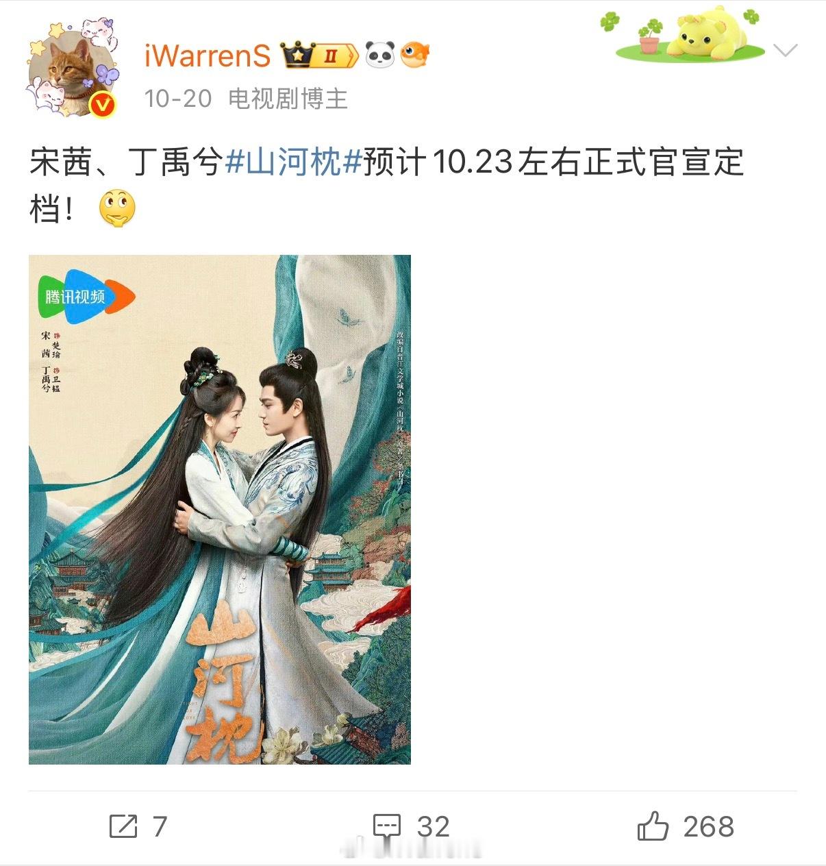 丁禹兮新剧山河枕1023要定档了!哈哈哈……还好我提前说了![yeah]