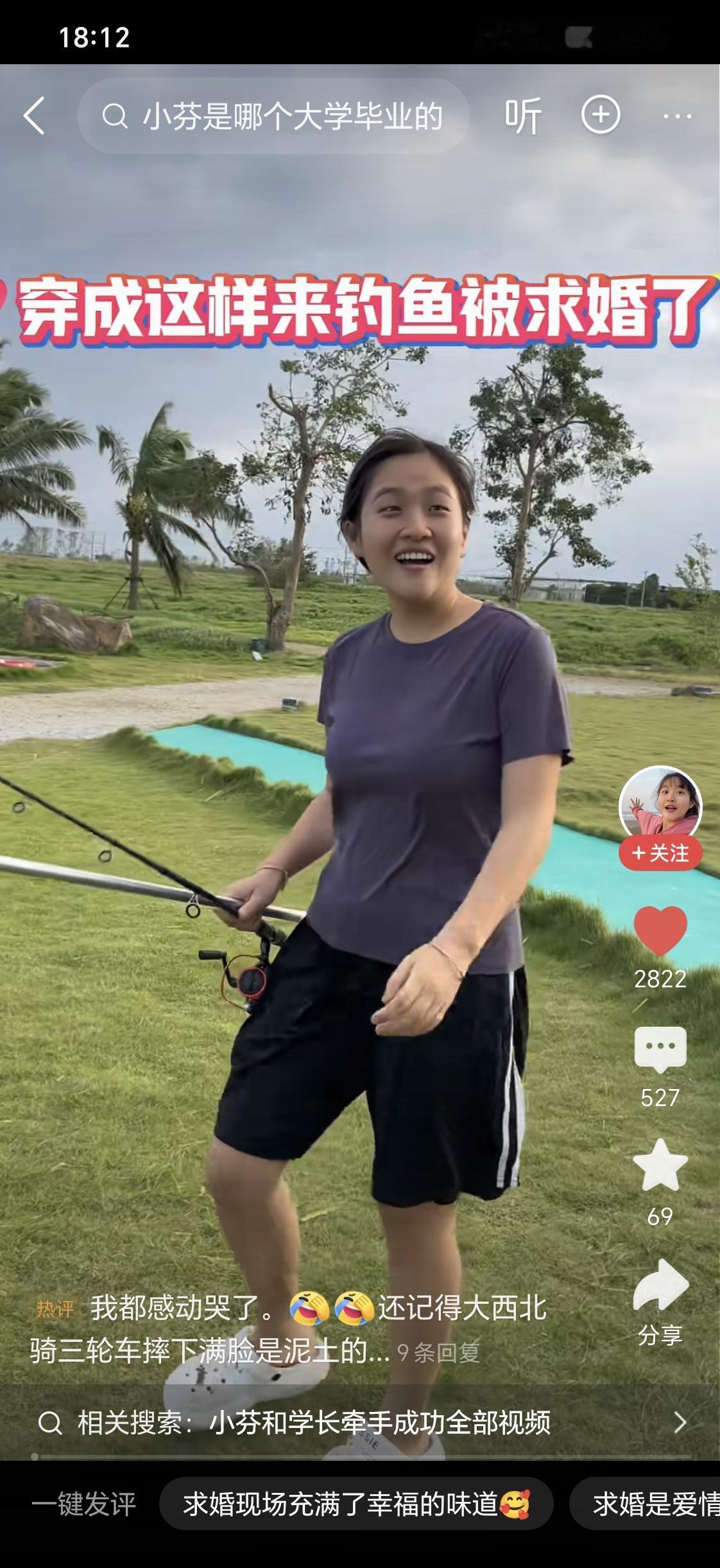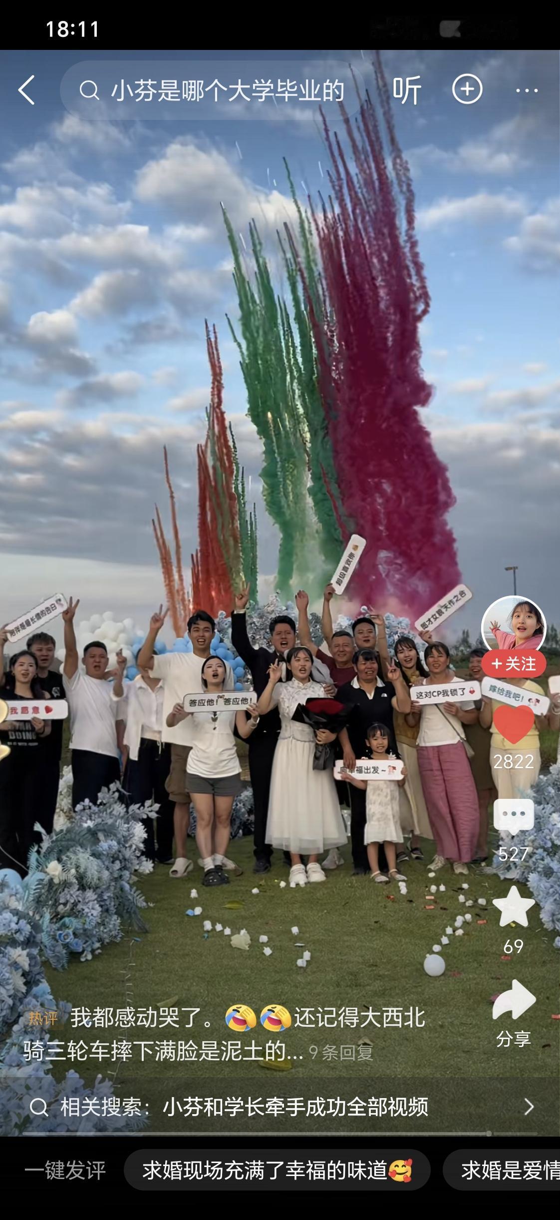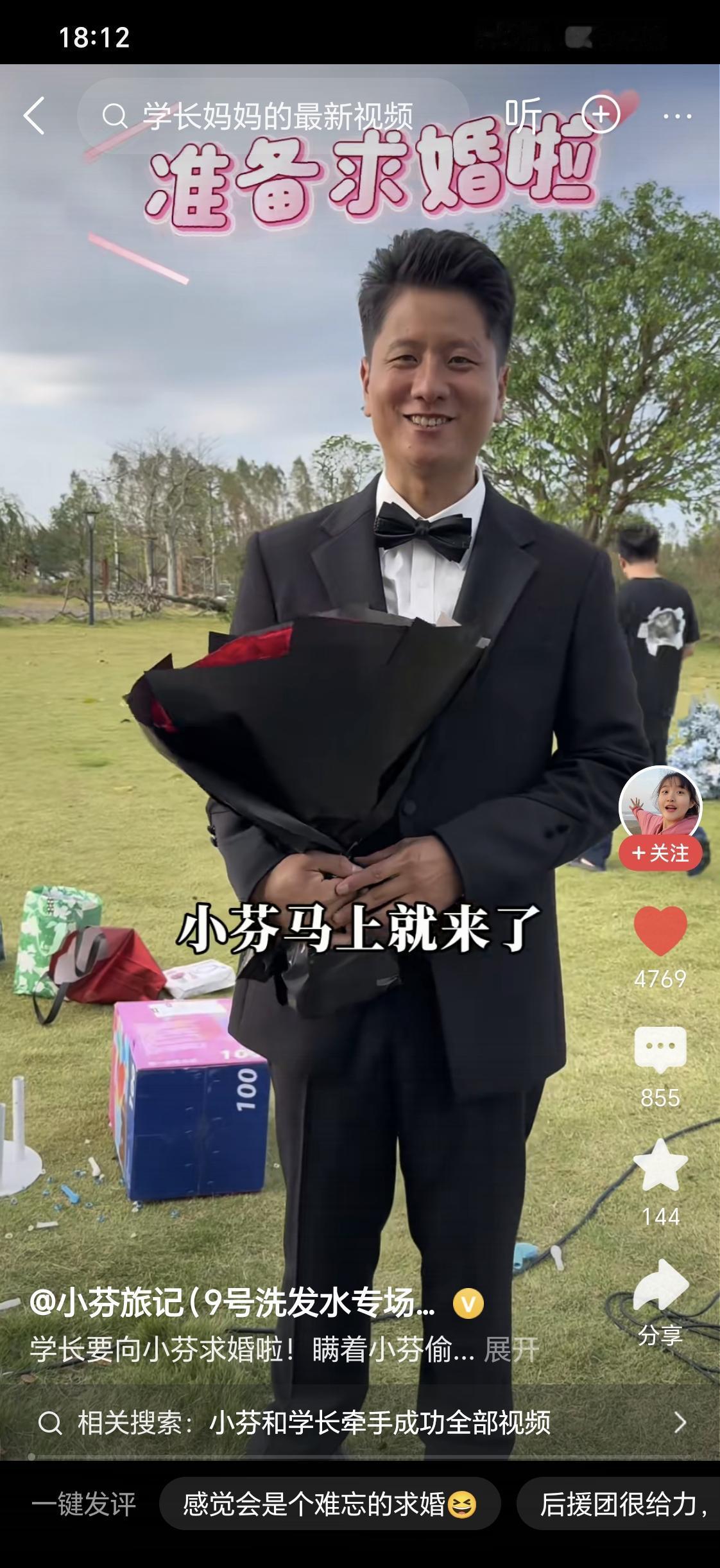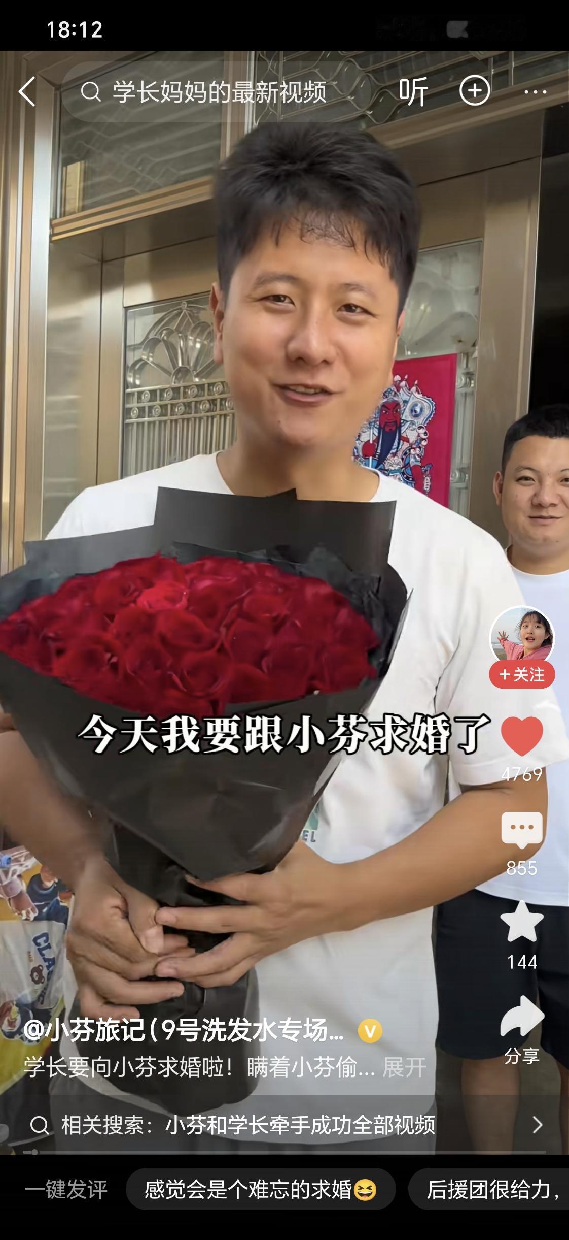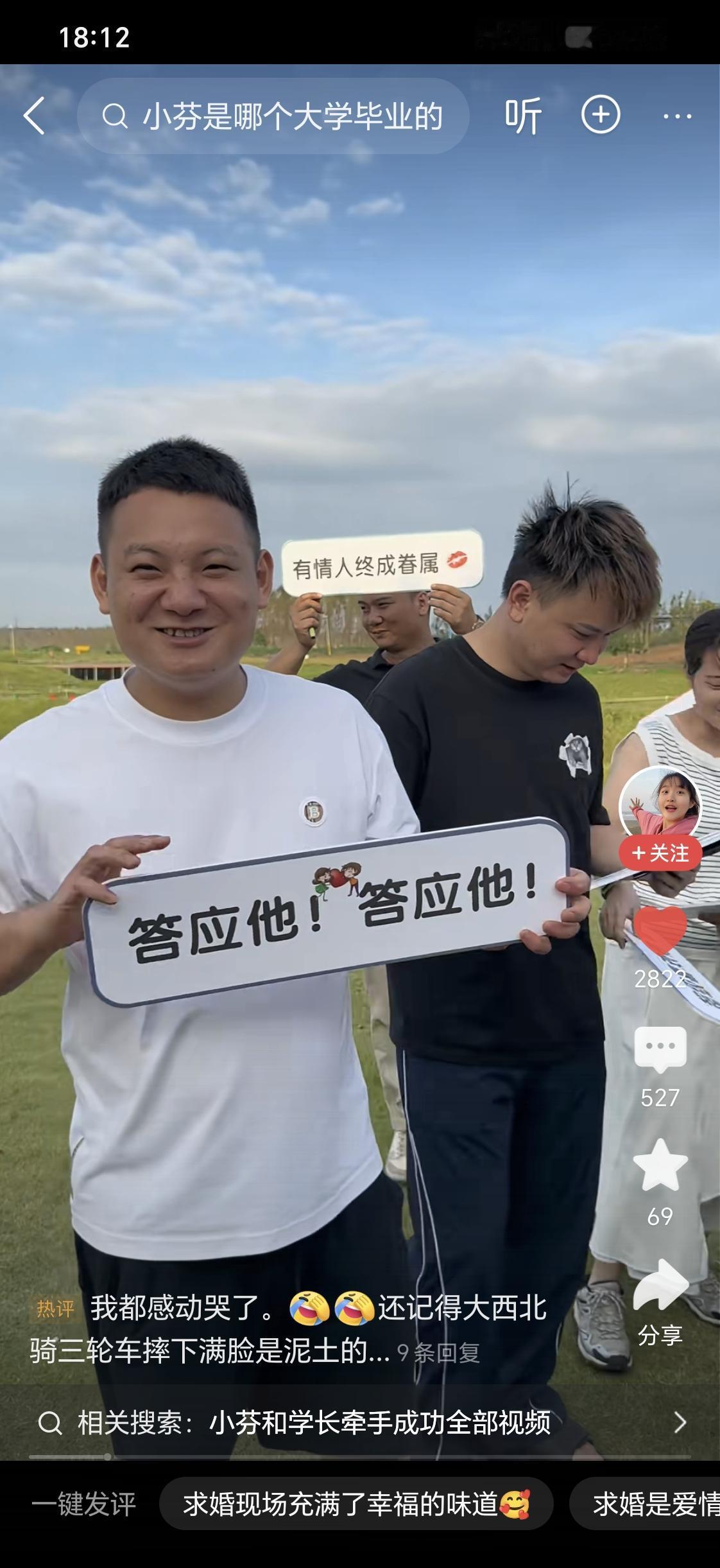 求婚太甜了,有仪式感就是对爱情的尊重[捂脸][比心][比心][比心]大网红的爱情要结果了。 湛江学长向潮汕小芬求婚。 学长偷偷带家人准备, 瞒着以为来钓鱼的小芬, 把小芬带到精心准备的场地。 小芬收到亲人团的玫瑰花, 换上新裙子, 穿上洞洞鞋[捂脸]收下了学长的金戒指。 现场放烟花, 学长紧张又动容地念完稿子, 现场人又激动又哭又笑,都为学长加油, 为学长和小芬的求婚加油! 我都看泪目了。 这样甜甜的感情真好嗑!求婚 学长求婚 潮汕人求婚