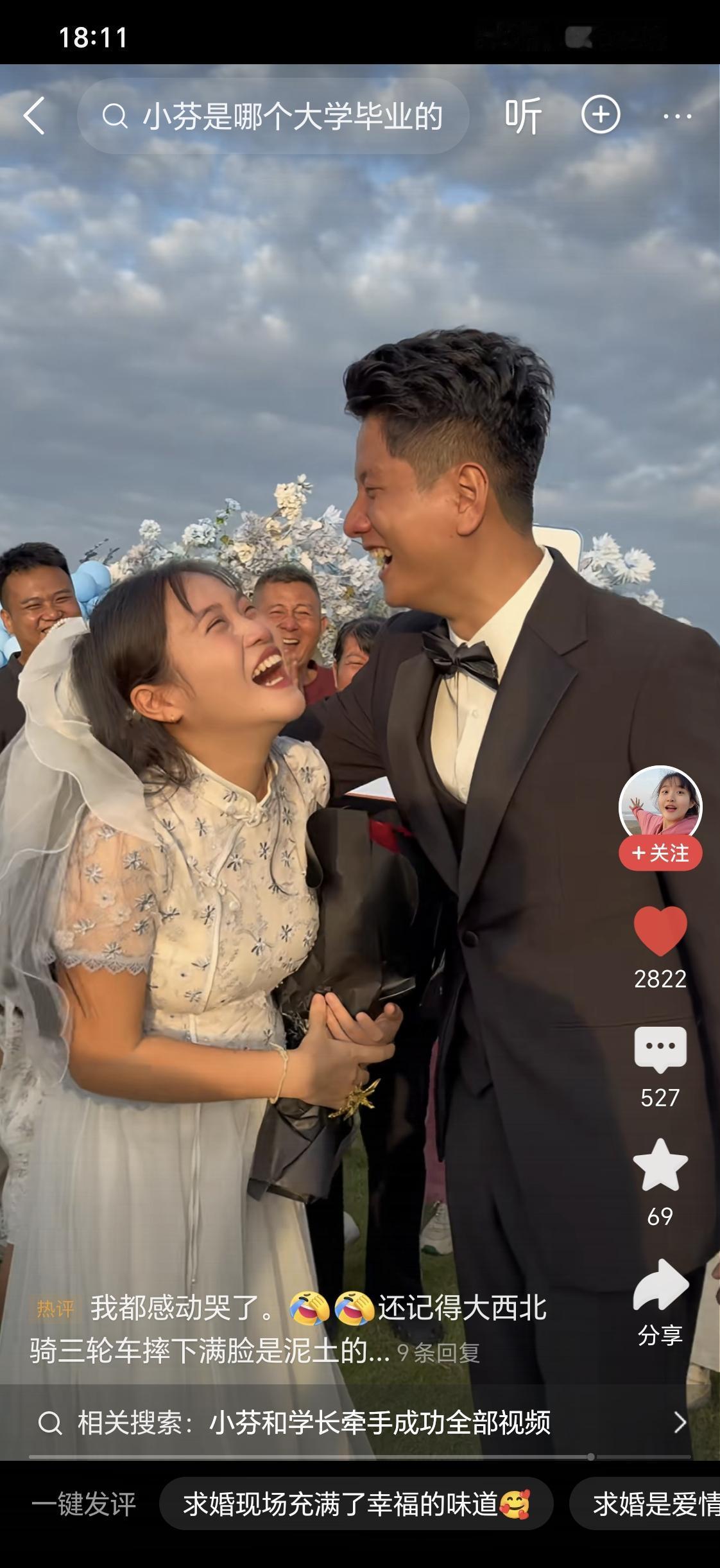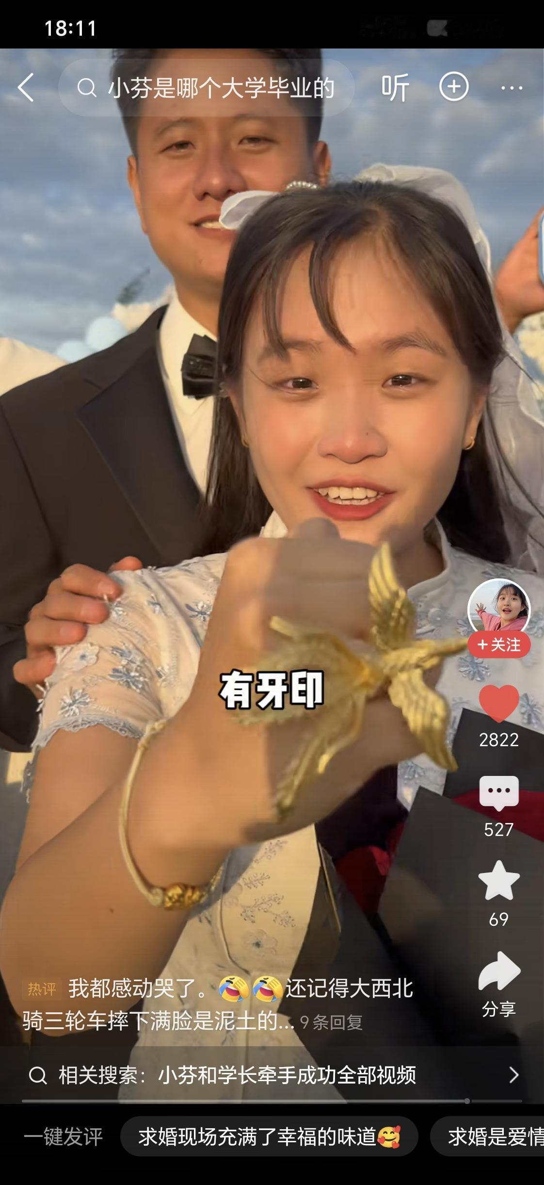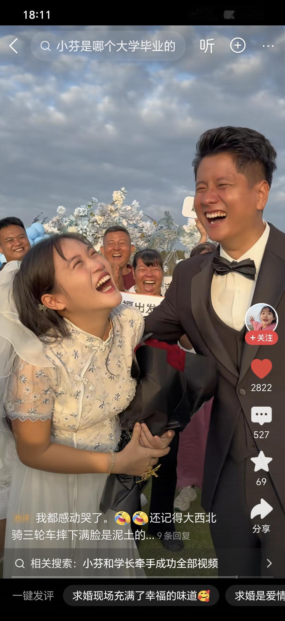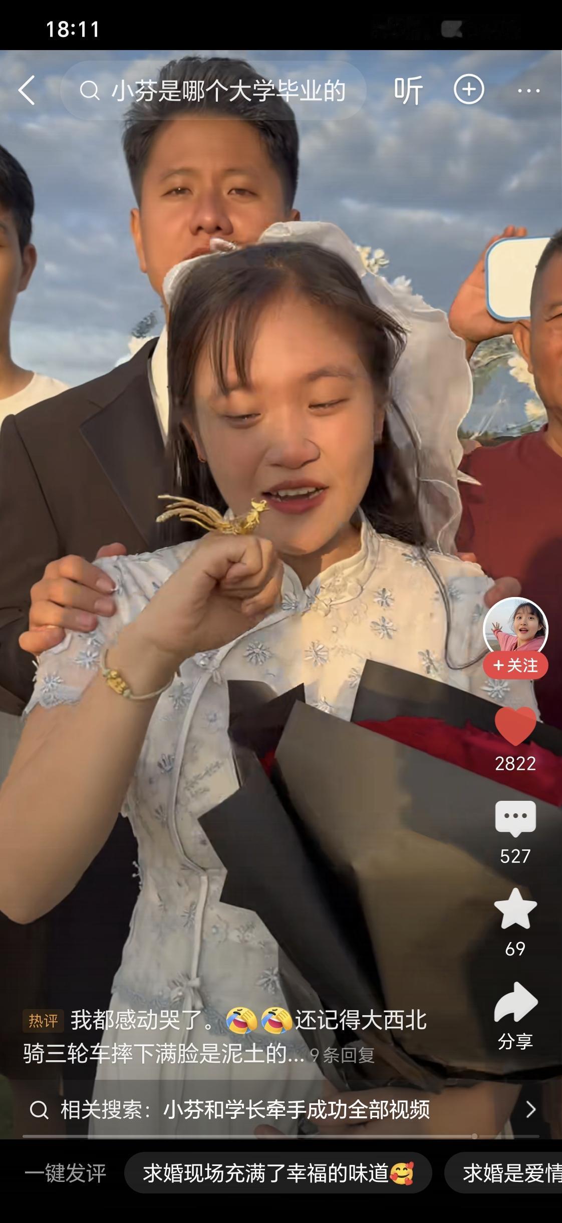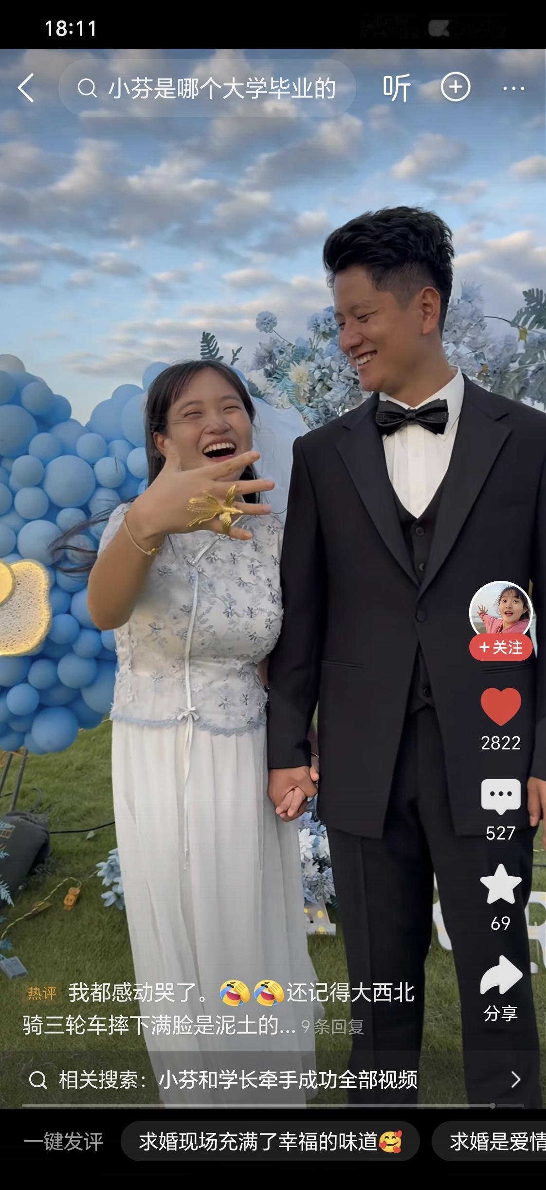求婚太甜了,有仪式感就是对爱情的尊重[捂脸][比心][比心][比心]大网红的爱情要结果了。 湛江学长向潮汕小芬求婚。 学长偷偷带家人准备, 瞒着以为来钓鱼的小芬, 把小芬带到精心准备的场地。 小芬收到亲人团的玫瑰花, 换上新裙子, 穿上洞洞鞋[捂脸]收下了学长的金戒指。 现场放烟花, 学长紧张又动容地念完稿子, 现场人又激动又哭又笑,都为学长加油, 为学长和小芬的求婚加油! 我都看泪目了。 这样甜甜的感情真好嗑!求婚 学长求婚 潮汕人求婚