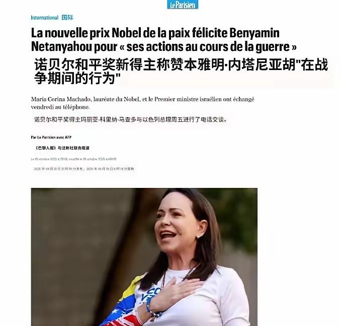 大家记住,很多诺贝尔和平奖得主对和平的理解,与普通人,特别是咱们国家的普通人对和平的理解是不同的!所以内塔尼亚胡在加沙的行为能够得到马查多的赞赏!
