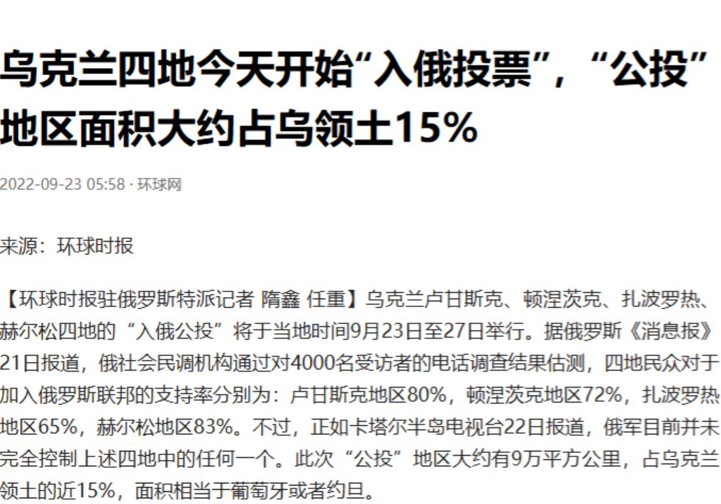 更有意思的是,这四块地加起来足足9万平方公里,快占到乌克兰国土的15%,差不多有个葡萄牙那么大,俄军当时甚至没完全控制这些地方,就急着要纳入版图。
