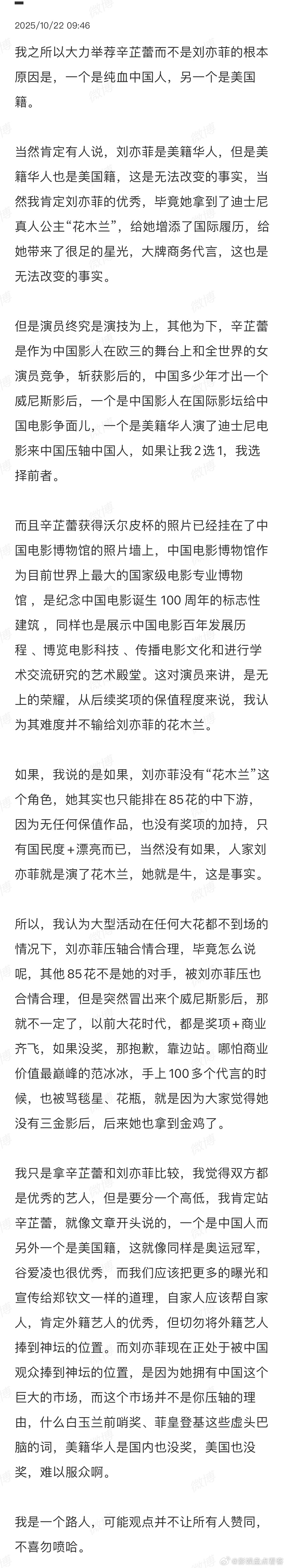 辛芷蕾的国民度+代表作、代表角色、商业价值+资历,都还需要提高。只有一个奖杯,只能代表她在那部作品演技好,其他的等市场验证吧[流汗]
