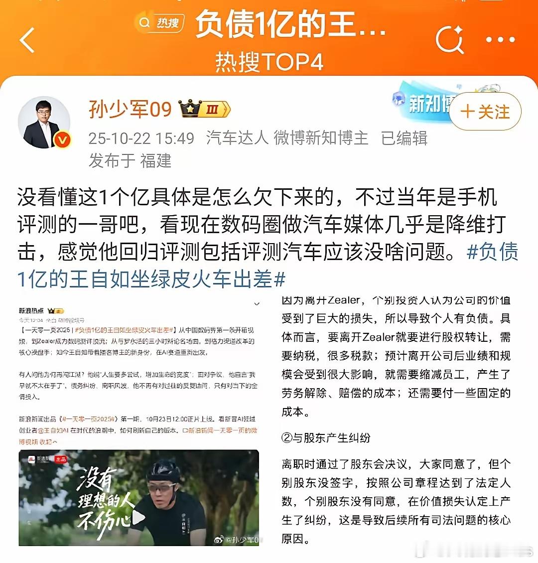 孙少军:没有看懂王自如这1亿元是怎么欠下来的?