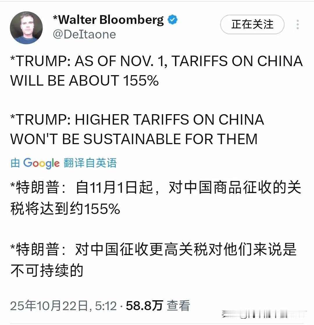 最新消息:特朗普再次称将从11月1日起对中国产品征收155%的关税。特朗普表示:“对中国商品征收更高的关税对他们来说是不可持续的。”特朗普还指出,中国多年来一直在“利用美国”,而这一次的关税幅度也不会小。 特朗普又把关税大棒扛出来了,可这戏码实在算不上新鲜,早就是众人看腻的老调重弹。前几年美国掀起关税战的热闹劲儿还没散尽,后果却早已刻在美国经济的肌理里。 当时喊得比现在还凶,关税幅度也不算小,可最后呢?所谓的“施压”成了自导自演的尴尬剧,如今换个更高的数字再来一遍,真当市场和民众都没记性? 特朗普口口声声说对中方不可持续,怎么不低头看看美国自己的处境?上一轮关税战的疮疤还没好利索,新的伤口就要自己划开。彼得森国际经济研究所早算过账,之前的关税让美国普通家庭每年多掏1300美元,这笔钱可不是从天而降,全是从日常开销里硬抠出来的。 亚马逊上的小家电、超市里的日用品,哪样没因为关税悄悄涨价?美国海关数据显示,关税高峰期进口商品价格涨了4%,国内产品也跟着涨了2%,普通家庭的钱包实实在在瘦了一圈。 农业领域的惨状更是肉眼可见,中方曾是美国大豆最大买家,巅峰时每年采购量占其出口总量近三成,可关税战一打响,中方反制停购,美国大豆瞬间没了销路。2025年9月,中方从美国进口的大豆量直接归零,这是七年来头一遭,而去年同期还有170万吨。 中西部农场的仓库堆得满满当当,有的大豆都发霉了,农民看着丰收的作物却拿不到钱,心里比黄连还苦。雪上加霜的是,种粮成本还在疯涨,劳动力成本涨了47%,化肥支出猛增37%,种子和燃料也分别涨了18%和32%,可玉米价格却从每单位7美元跌到4美元,跌幅超40%。 种得越多亏得越多,有农场主说种一百亩地的收益,还不如进城打半年工。这股颓势早就蔓延到了制造业,农民没钱买农机,拖拉机、收割机的订单骤减,中西部的农机企业生产线只能闲置,上游的钢铁、橡胶行业也被拖累。 美国农场局联合会急得给白宫发紧急呼吁,说农业危机要威胁到整个行业的生存,可政府除了发补贴别无他法。特朗普第一任期就给过230亿美元补贴,现在又琢磨着拿100亿到150亿,可这不过是“左口袋掏右口袋补”的把戏,大豆协会主席都直言这是用创可贴包开放性伤口,根本止不住血。 更讽刺的是特朗普吹嘘的“千亿关税收入”,关税高峰期美国财政部年收入也就700亿到800亿美元,累计下来也才2000亿到3000亿美元,远没到他说的“几千亿”。而且这笔钱大多拿去补贴农民了,根本不是什么“净收益”,反而还得承担企业投资下降、供应链紊乱的隐形成本,这些损失可比关税收入多得多。 2018年对钢铝加税,行业多赚22.5亿美元,可下游企业成本飙升,产量缩水34.8亿美元,就业市场更惨,钢铝行业多了1000个岗位,其他行业却少了7.5万个,这笔赔本买卖做得实在荒唐。现在要征155%的关税,比之前翻了好几倍,后果只会更严重。 依赖中方供应链的中小企业要么倒闭,要么涨价,最后还是消费者买单。波士顿联邦储备银行测算,这会把核心通胀率推高75个基点,本就受通胀困扰的低收入家庭日子更难熬。而中方大豆进口转投巴西、阿根廷,2025年9月从巴西进口量增了29.9%,阿根廷更是暴增91.5%,多元化布局让供应链稳如泰山。 155%的关税或许会有短期扰动,特朗普说中方“利用美国”,纯粹是颠倒黑白。中美贸易从来都是互利共赢,中方的物美价廉商品帮美国消费者省了钱,美国企业也靠中方市场赚得盆满钵满。世界贸易组织早裁定过,美国以国家安全为由加税违反规则,这可不是嘴硬就能改变的事实。 中方的态度一直很明确,不愿打但也不怕打,谈的大门敞开,可极限施压的套路根本行不通。关税战从来没有赢家,这是早就被验证的真理。特朗普这波操作,说到底就是转移矛盾的政治把戏,可经济规律不是喊口号能左右的。 上回是雷声大雨点小,这次怕是连雷声都没人当真了。11月1日越来越近,明眼人都看得明白,这场闹剧注定还是烂尾收场。保护主义是死路一条,以邻为壑只会孤立自己。特朗普真该醒醒了,别再拿美国企业和消费者的利益当筹码,这老掉牙的戏码,早就该落幕了。