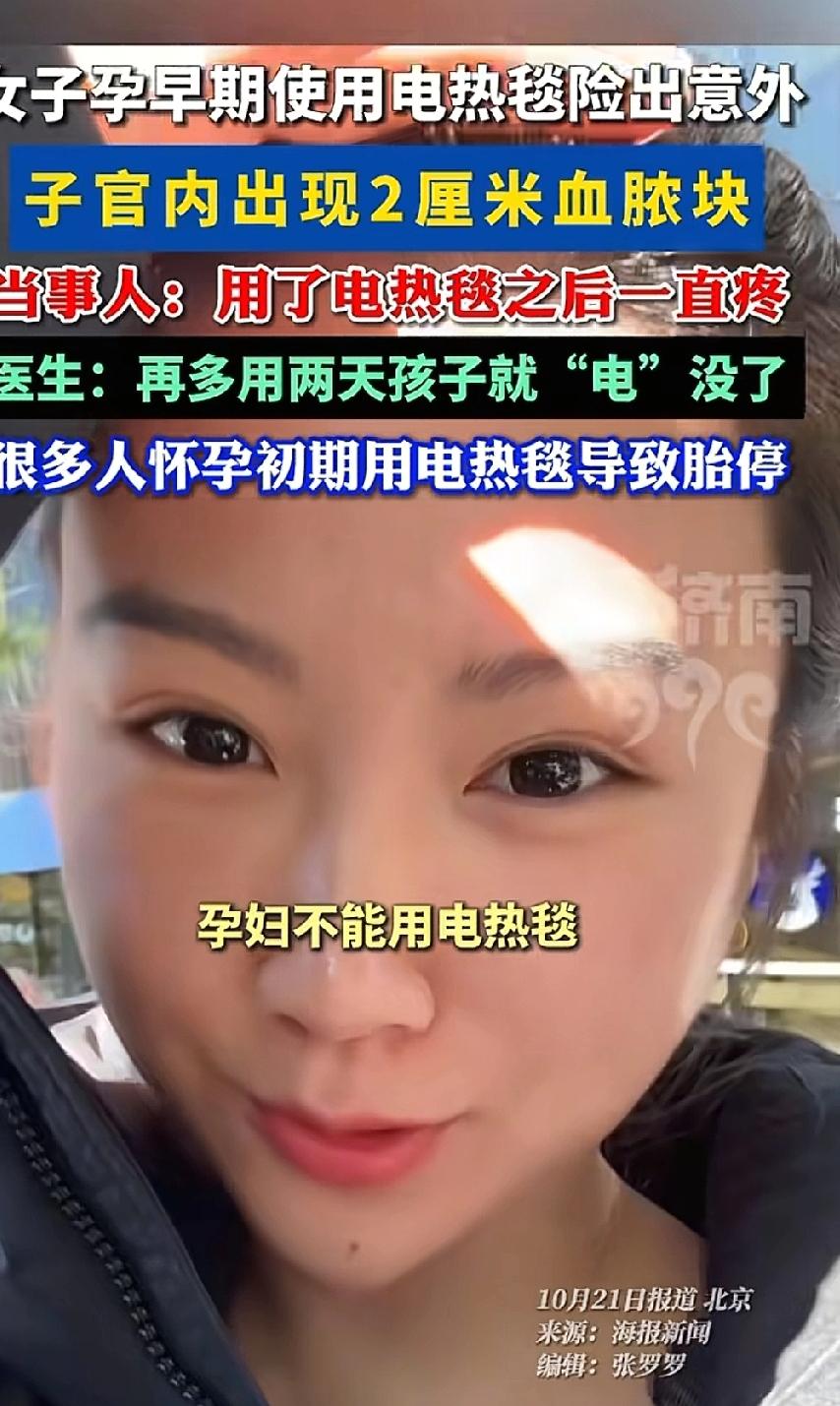 惊悚!孕期不能用电热毯,小心孩子“电”流产。 “再多用两天,孩子就‘电’没了。” 医生这句话,让孕早期的李女士(化名)吓出一身冷汗——她只是睡前开了电热毯暖被窝,没想到子宫里长出2厘米血脓块,腹痛不止差点胎停。 这不是个例:不少孕妈在孕早期依赖电热毯保暖,结果触发“热暴露危机”。 医学研究明确:孕12周内,母体核心体温升高(比如电热毯持续热敷、蒸桑拿),会增加自然流产、胚胎发育异常的风险。 胚胎早期对温度极其敏感,子宫局部过热会干扰细胞分裂,甚至直接损伤胚胎组织——就像李女士的情况,电热毯的持续高温成了“隐形杀手”。 别等危险发生才后悔!孕早期的每一个“小习惯”,都可能影响胚胎的生死。