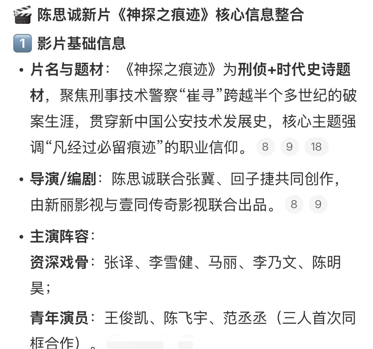 王俊凯、陈飞宇、范丞丞要联手出演陈思诚的新片啦! 这阵容简直绝了,王俊凯演技不断突破,陈飞宇自带高人气和科班功底,范丞丞转型超成功。三位帅哥齐聚,这是要把粉丝们的期待值拉到爆表啊! 陈思诚就更不用说了,《唐人街探案》《误杀》都是爆款。这次他会给三位帅哥打造怎样的角色,真的太让人好奇了! 《神探之痕迹》到拍摄后半程了,张译,马丽,陈飞宇,范丞丞,王俊凯,李雪健,李乃文等出演。阵容挺狠,刑侦题材,要是去明年春节档,会有很大的票房潜力吧。 ​ 快在评论区留下你的想法,一起讨论呀!王俊凯 陈飞宇 范丞丞