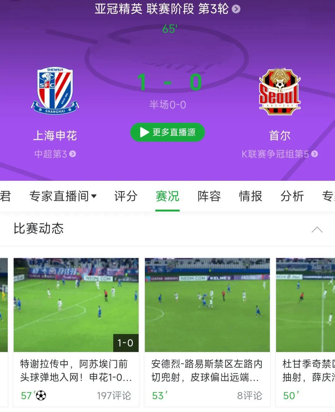 值得尊敬!亚冠上海申花率先破门! 亚冠精英赛面对K联赛球队首尔,面临中超争冠压力的上海申花还是派出了几乎全主力阵容,这一点确实让人敬佩。这样的态度也让上海申花收到回报,他们在下半场比赛通过一次边路传中的机会由阿苏埃头球破门! 这样一来,上海申花很有可能能够在主场全取三分,加油!