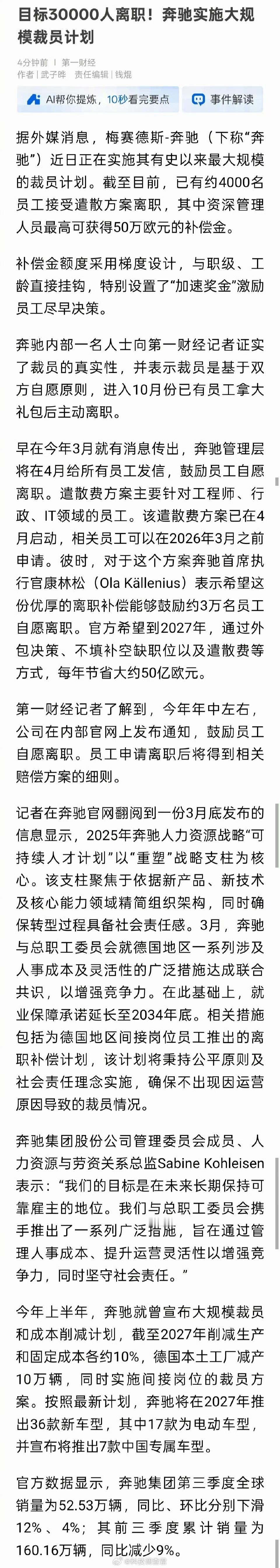奔驰实施30000人裁员计划没错是3万人不是3千人,合资车企日子不好过啊~