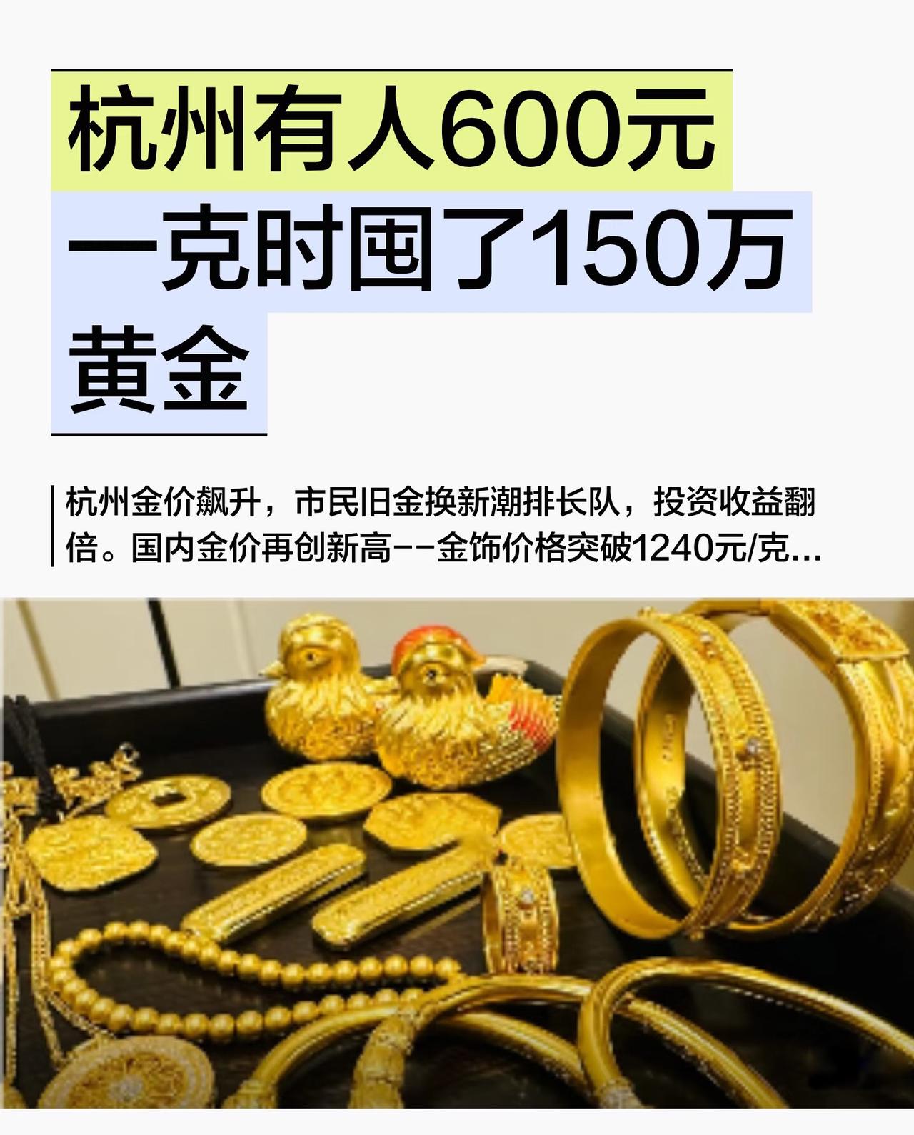 史上比追涨杀跌还清醒的投资出现了!追涨杀跌和它一比,竟然还是小巫见大巫了!毕竟追涨杀跌可没有在低位果断下手的本事。 杭州那男的去年金价600元一克时拿150万买金条,朋友都说他脑子不清醒,现在金价涨到900元一克,随便算算都赚了70万。普通人想跟也难,毕竟没150万闲钱放着等涨,只能干看着。现在打金店挤得满满当当,有人急着把旧金变现,有人观望不敢买,就他不慌不忙把金条改成首饰,既增值又能戴。这哪是跟风,分明是早有准备。 你说这钱是运气撞的,还是眼光攒的?