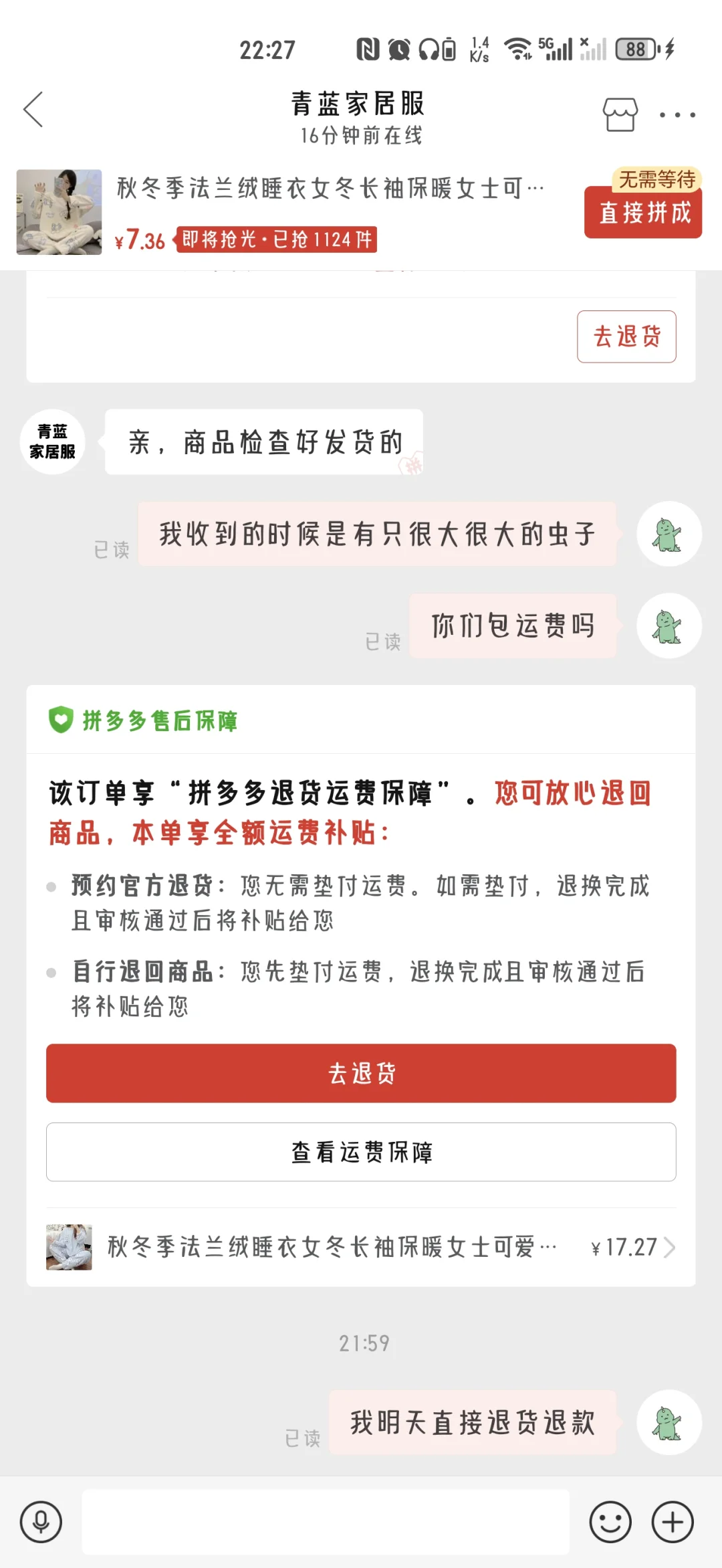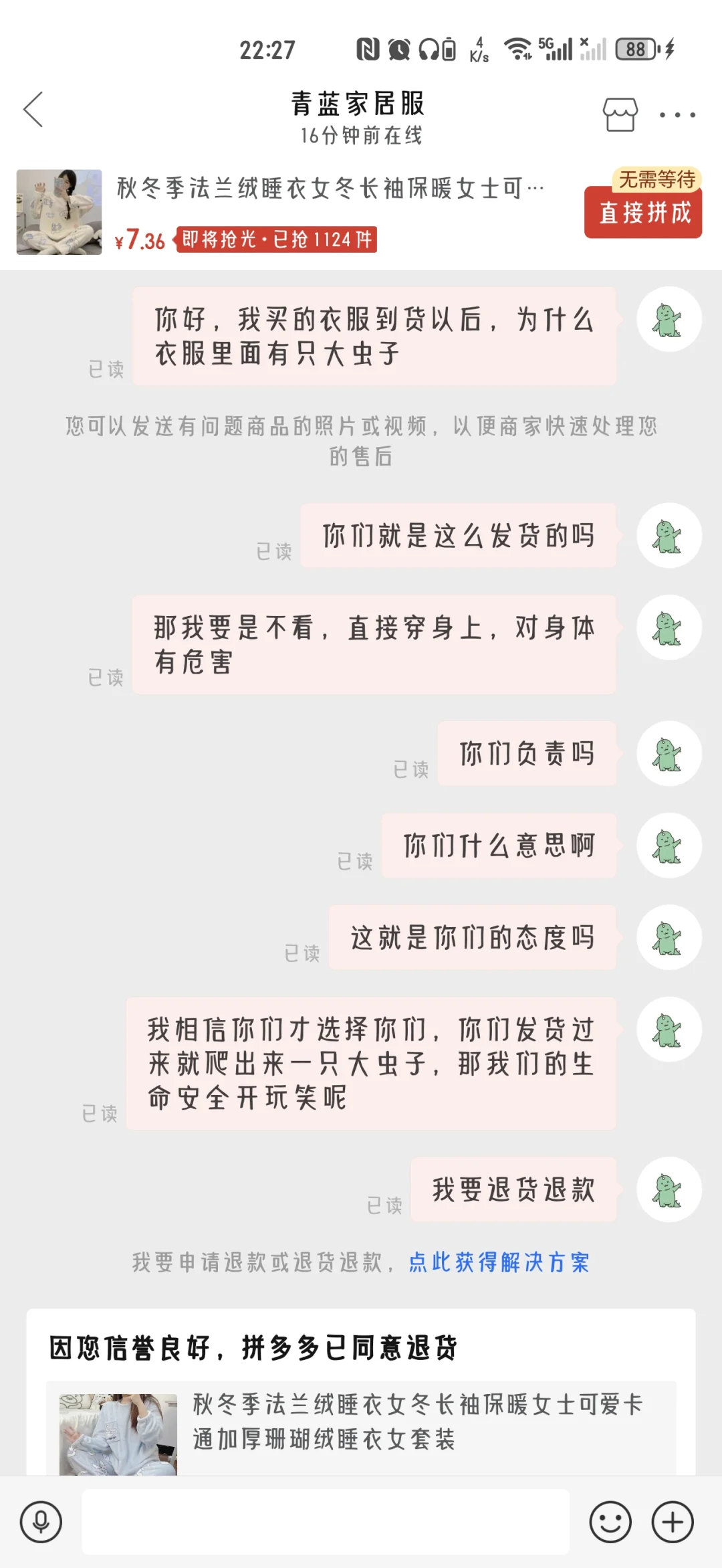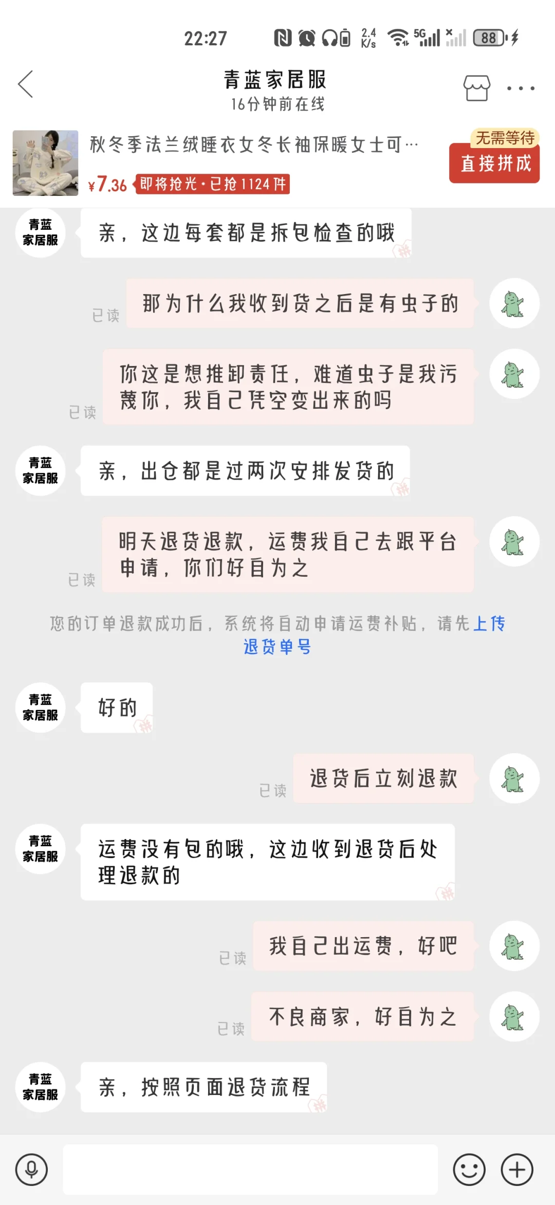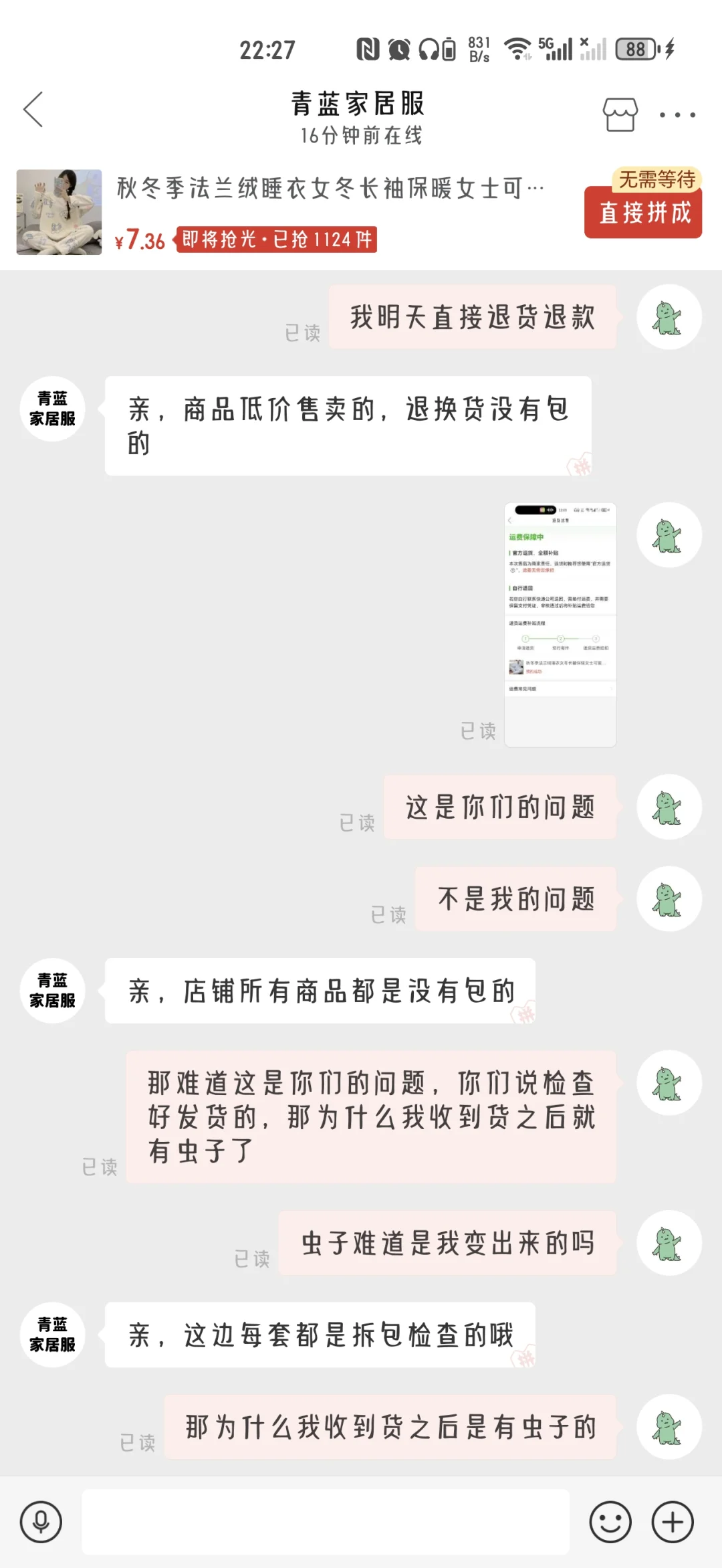 举报避雷 拼夕夕商家:青蓝家居服