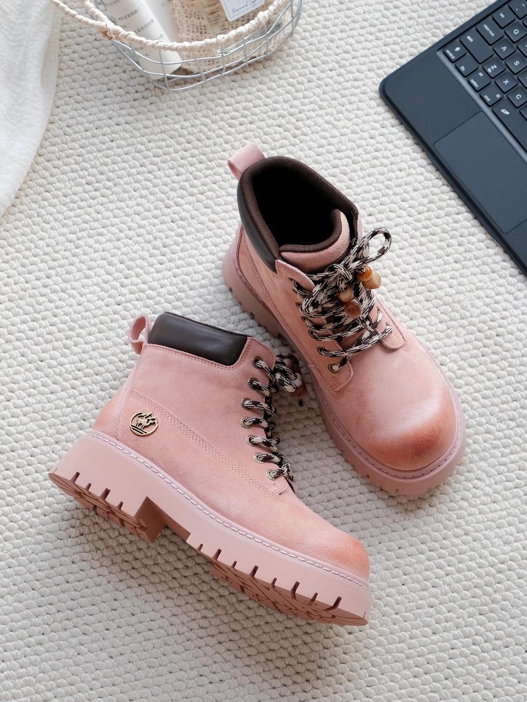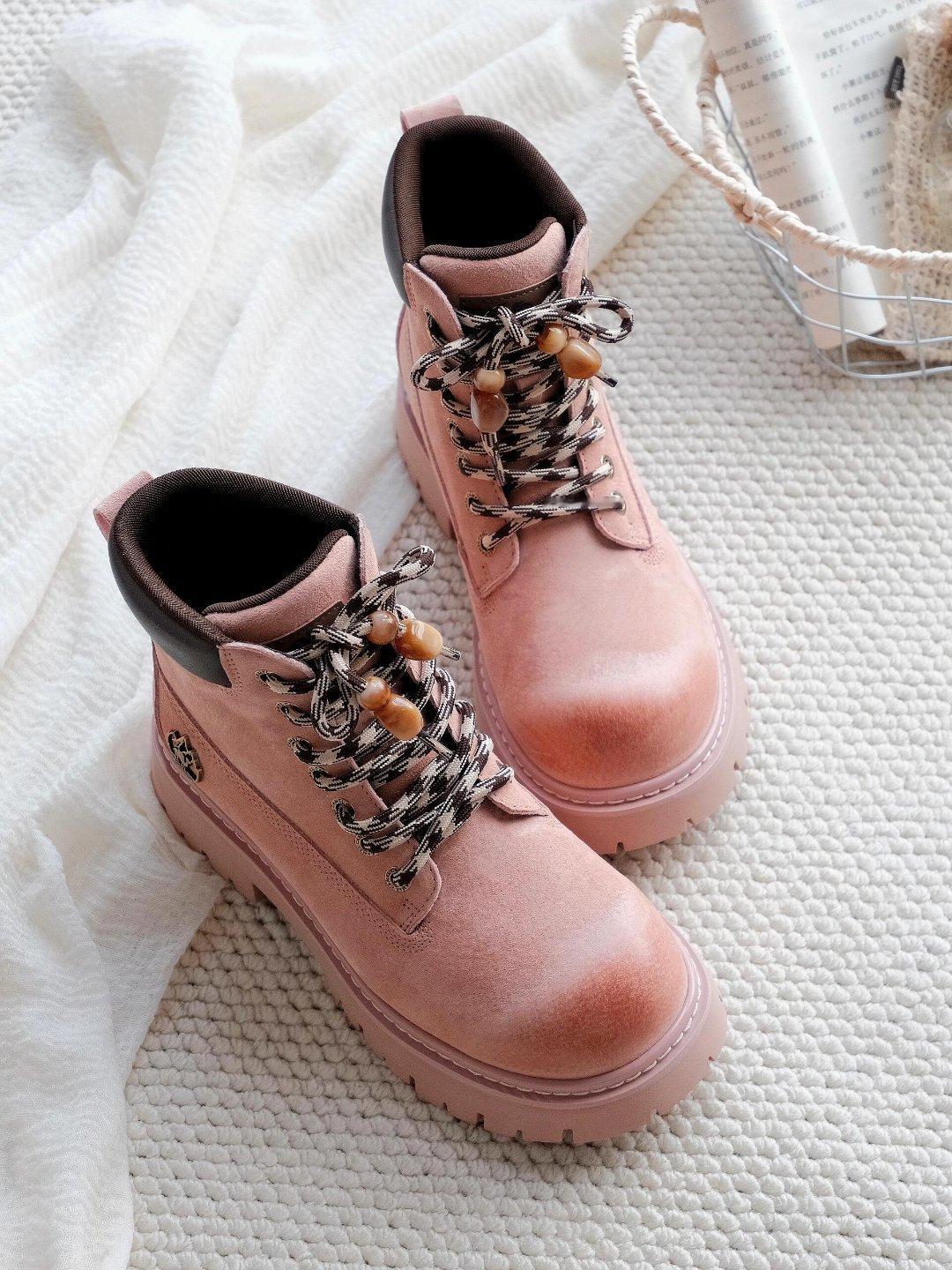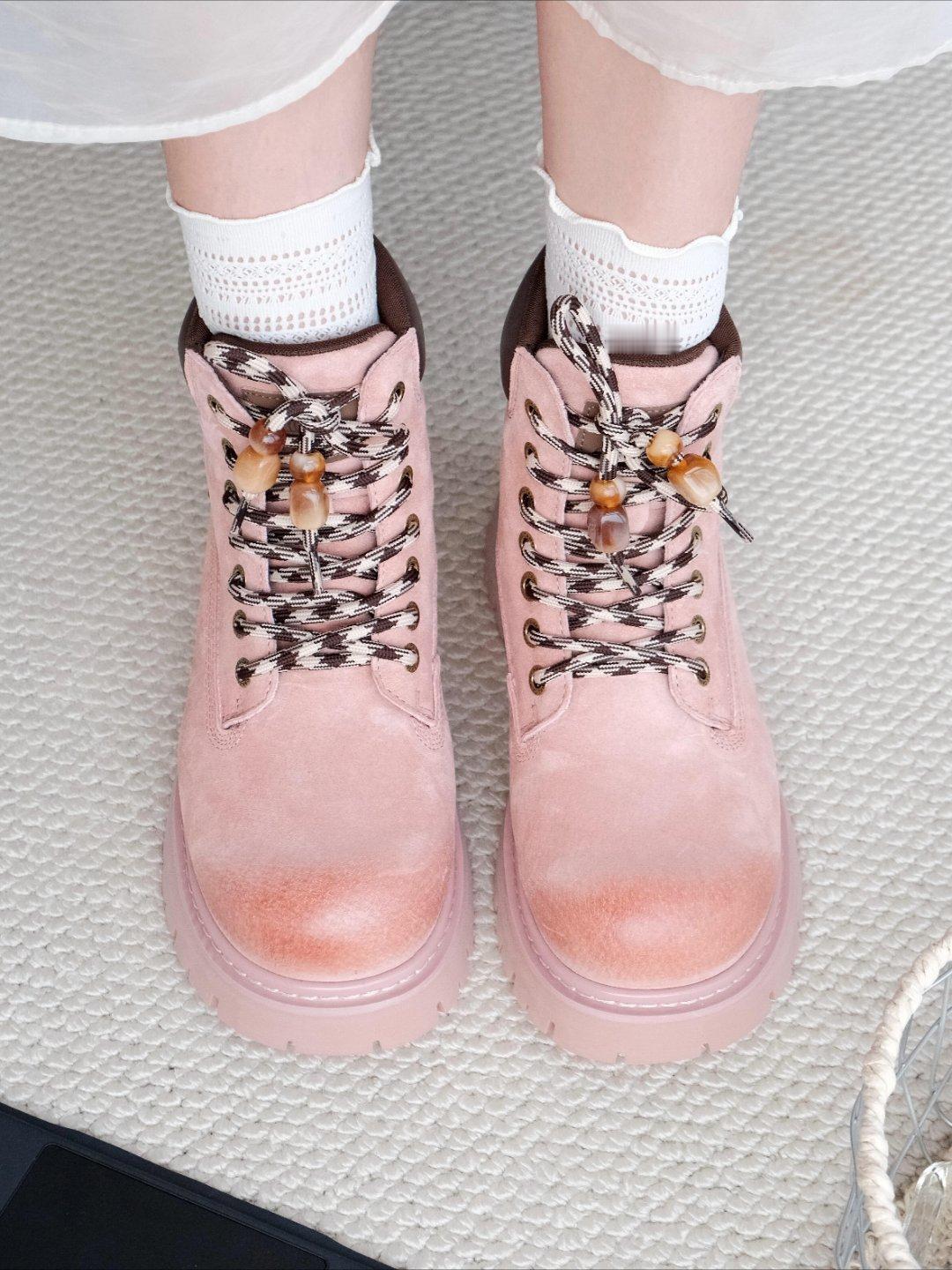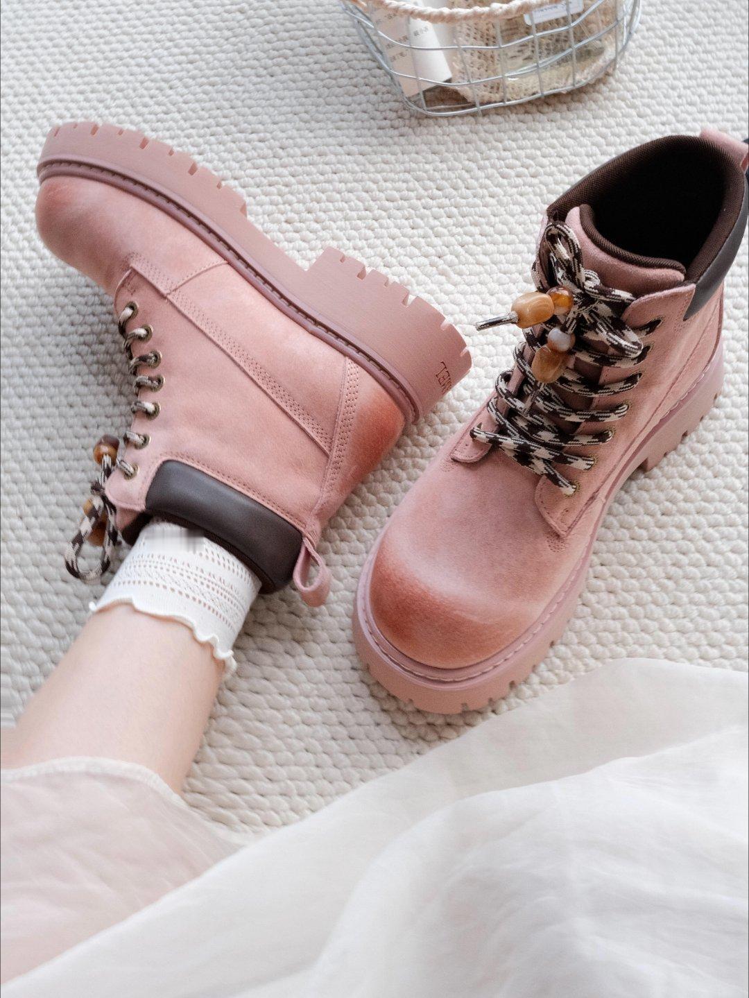 粉调是那种软乎乎的淡粉色,甜妹感拉满,但厚底+马丁靴的版型又自带酷飒劲儿,甜酷混搭真的绝了。鞋型是矮帮款,不压个子就算了,厚底直接给身高加buff,穿上腿型都被衬得又直又长,视觉增高少说5cm。