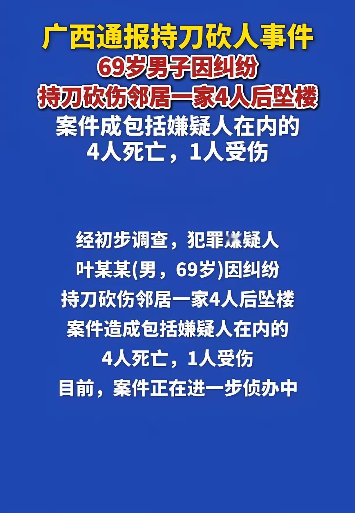 柳州这事儿太吓人了!小区突发惨案,69岁大爷持刀伤害楼上邻居四人,之后抱着必死决心跳楼身亡,目前小区已被警察封锁。 知情者透露,矛盾根源是噪音扰民——楼上34岁邻居总在休息时段打麻将,麻将声吵得大爷无法安歇,两人邻里矛盾早已累积,并非突发冲突。大爷疑似忍无可忍下冲动行凶,最终酿成双悲剧。 路过行人全程懵圈,只看到警察把现场围得严严实实,压根不知道里头出了这么大的事。现在邻里关系本就脆弱,一点小事没处理好就容易激化。 提醒大伙儿,遇事千万别脑子一热,冷静沟通才是正道,不然闯了祸,法律绝对不会留情!