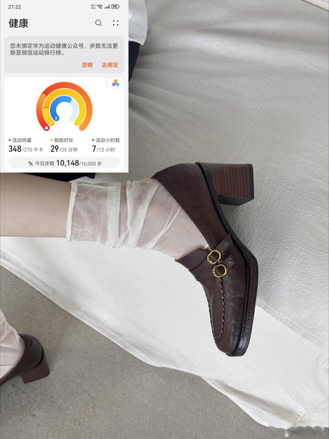 这双鞋是一款设计优雅的棕色女士乐福鞋。鞋面采用优质皮革,通过精致的缝线工艺勾勒出经典的便士乐福鞋轮廓。最大的亮点是鞋面上的双金属圆环搭扣,不仅作为功能性扣饰,更成为整体的视觉焦点,增添了复古而精致的摩登感。中跟粗跟的设计在适度增高的同时确保了全天候的舒适行走体验。搭配的白色薄款堆堆袜,与深棕色鞋身形成鲜明对比,轻松营造出慵懒又时尚的日常风格。整体造型简约而不简单,完美融合了经典与休闲趣味。时尚鞋履