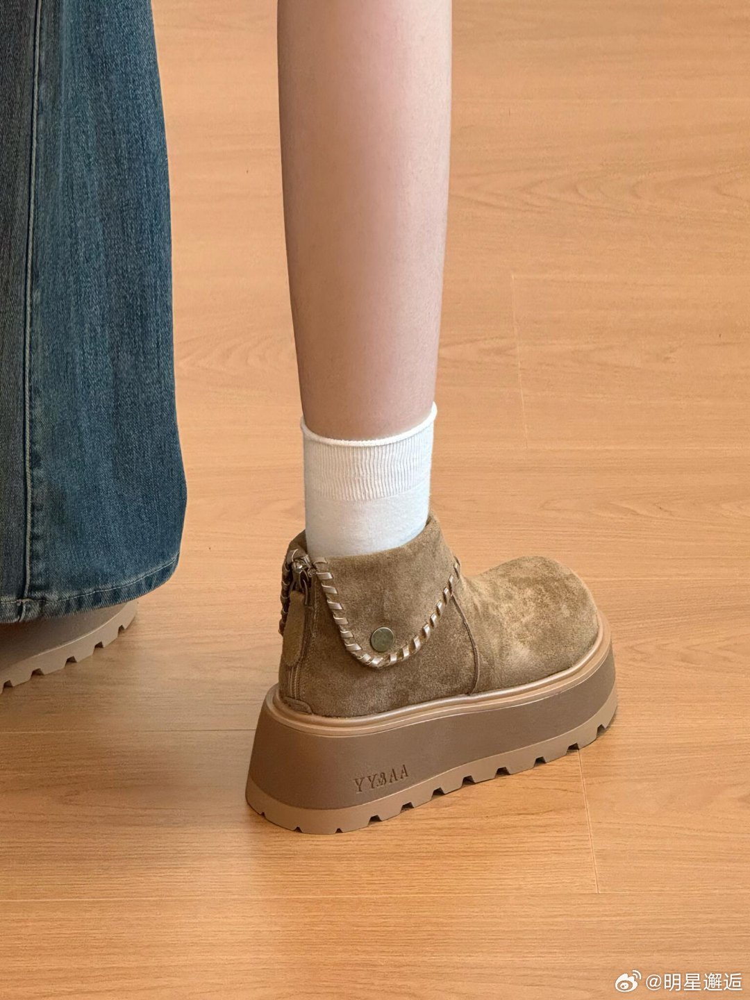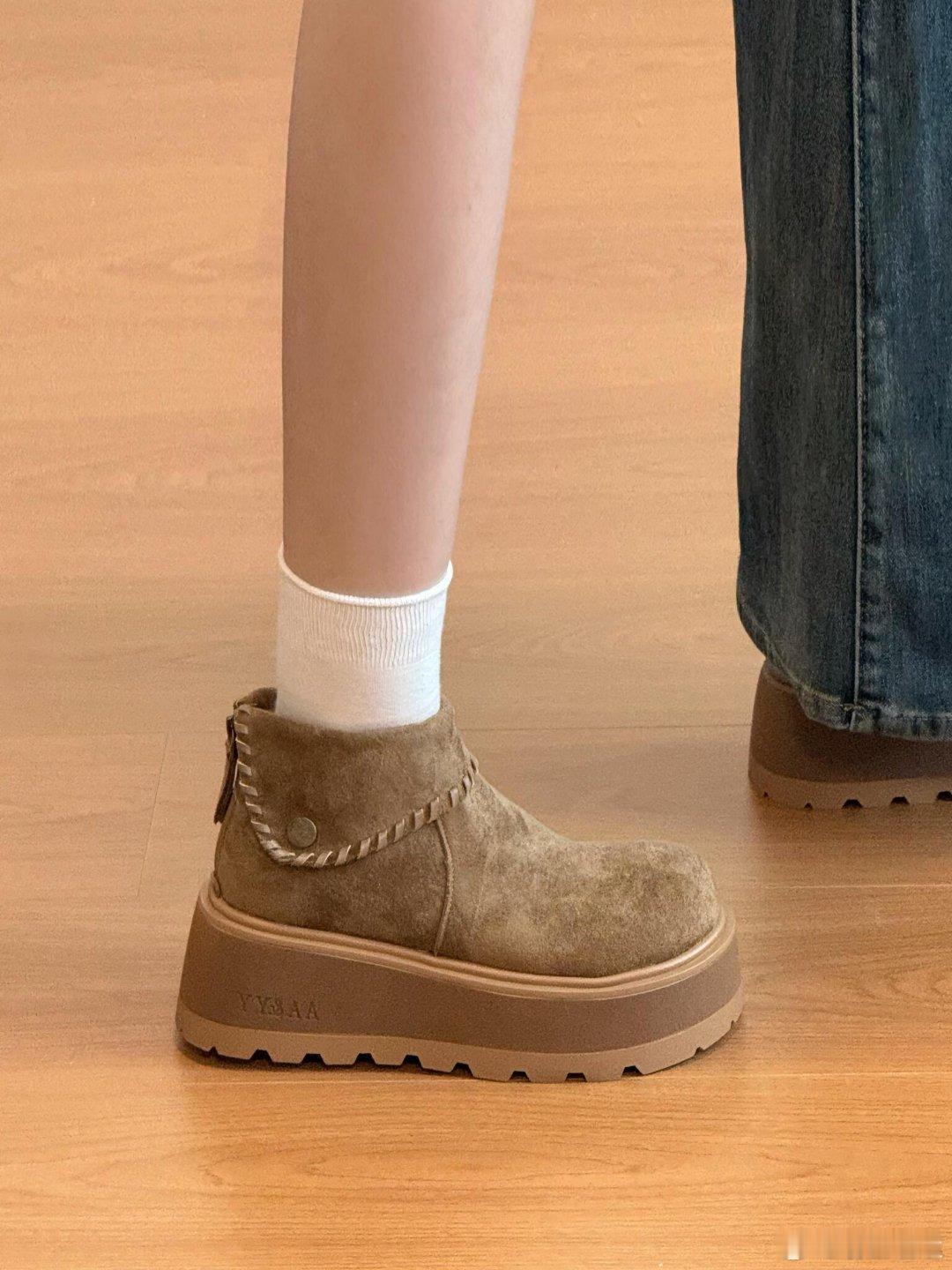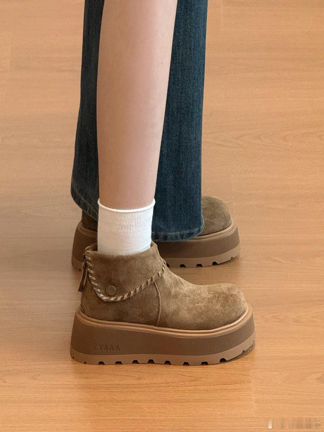 这双浅棕色短靴以质感独特的磨砂皮鞋面打造出低调复古的基调。鞋口处精巧的金属装饰与编织细节成为视觉亮点,为简约设计注入精致时尚感。厚实的棕色鞋底不仅提供舒适穿着体验,更侧面压印“YEEAA”品牌标识,彰显品牌身份。靴子轮廓利落,搭配白色袜子展现出清爽的层次感,与旁侧同款鞋履及蓝色牛仔裤共同勾勒出休闲时尚的穿搭风格。整体温暖柔和的色调与木质地板背景相得益彰,完美诠释了兼具实用性与设计感的日常鞋款选择。时尚鞋履