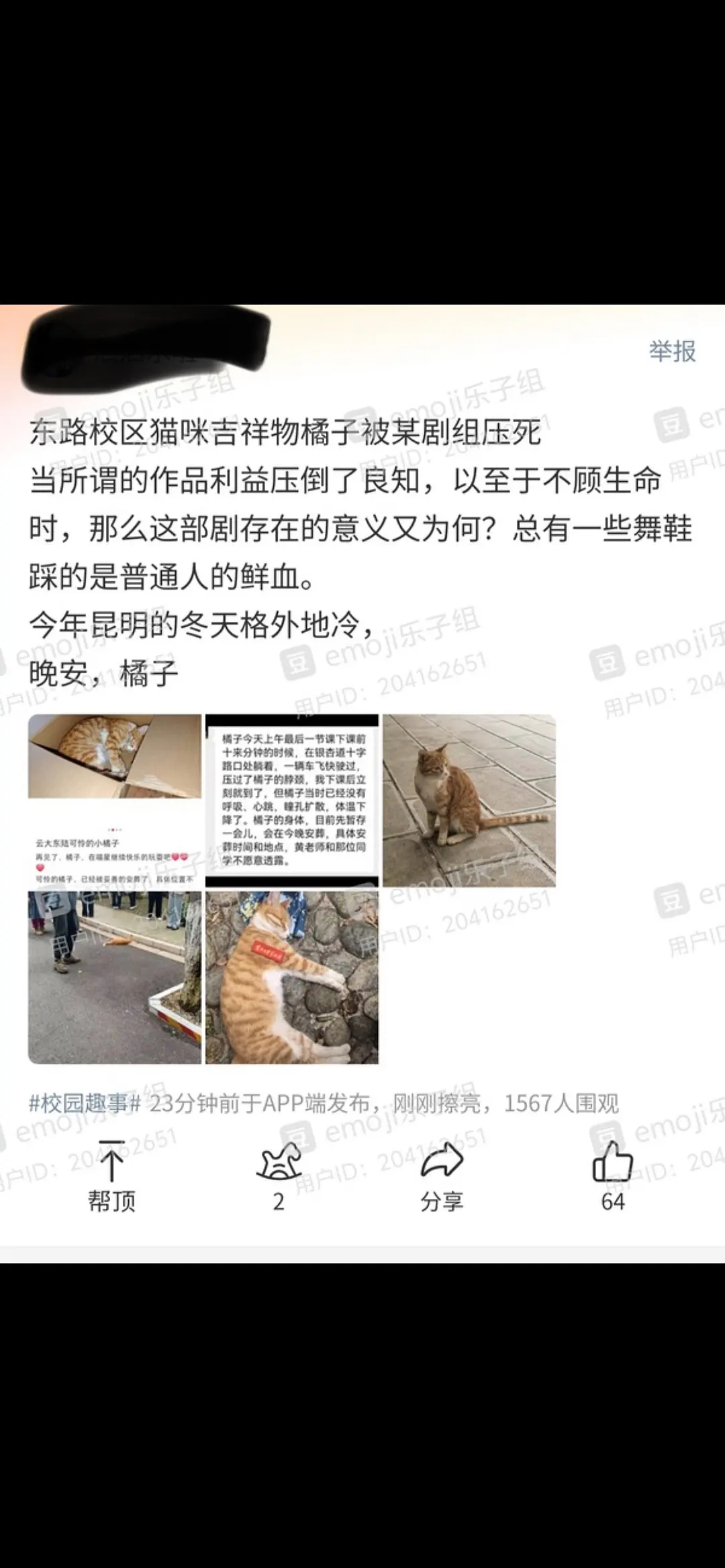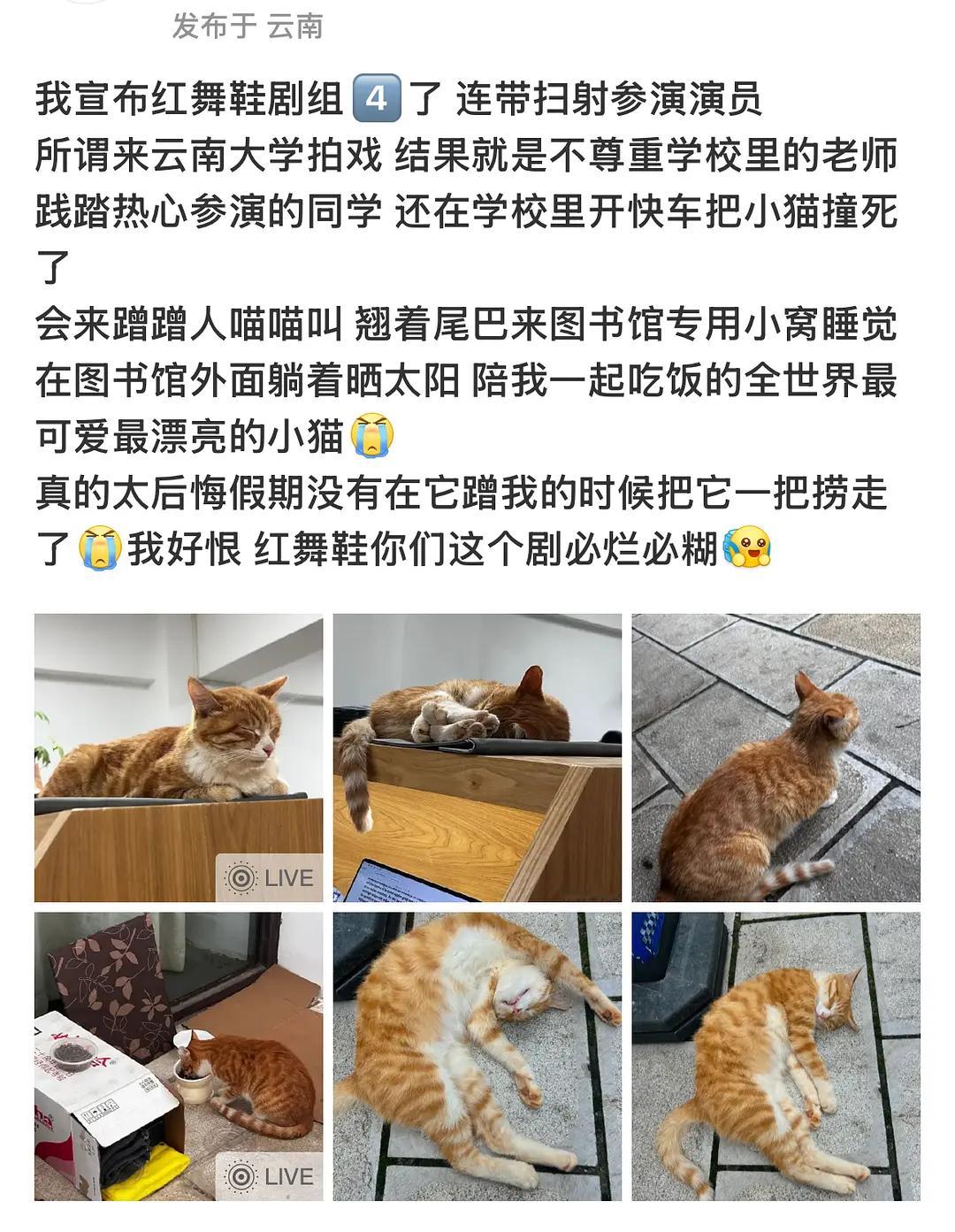 曝红舞鞋剧组开快车撞死猫 红舞鞋从开拍选角到苛待群演再到现在撞si校园里的小猫,各种各样的问题层出不穷,官🫘评论现在也已沦陷,只知道连生命都不屑一顾的剧组不可能拍出好东西,剧组还不出来道歉吗[疑问]?